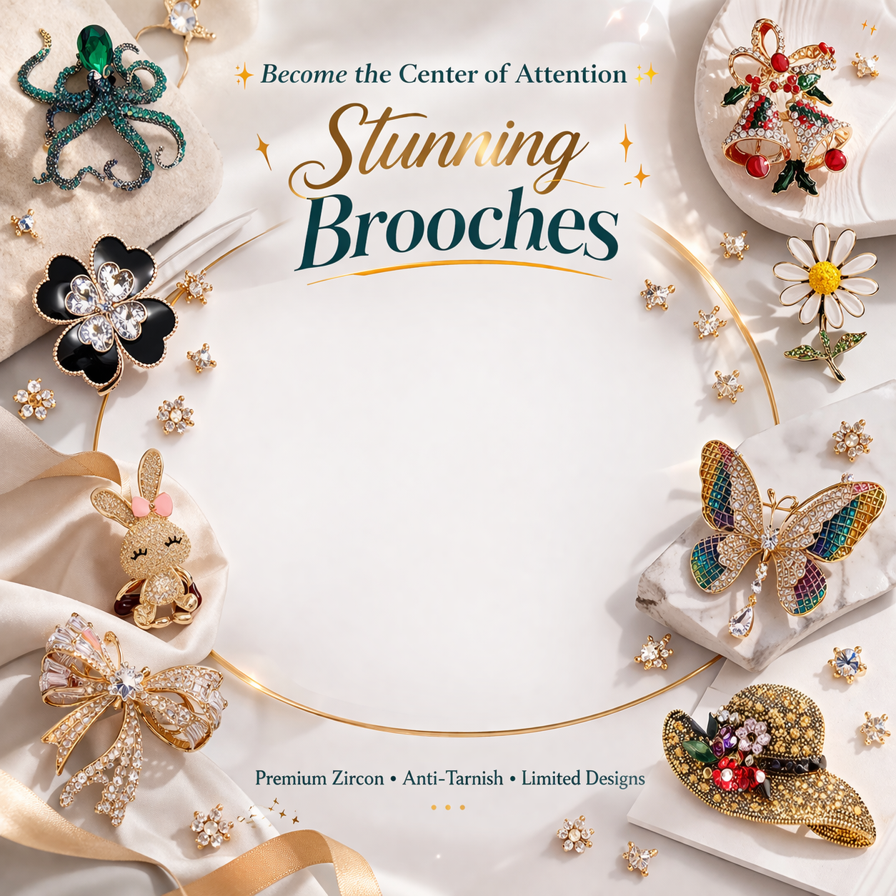 Elegant statement brooches crafted with premium zircon — designed to instantly elevate your look with sophistication and shine.