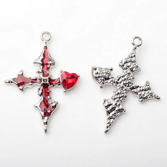 SP 1407 Red Heart cross alloy silver charm - per piece - tarnish resistant