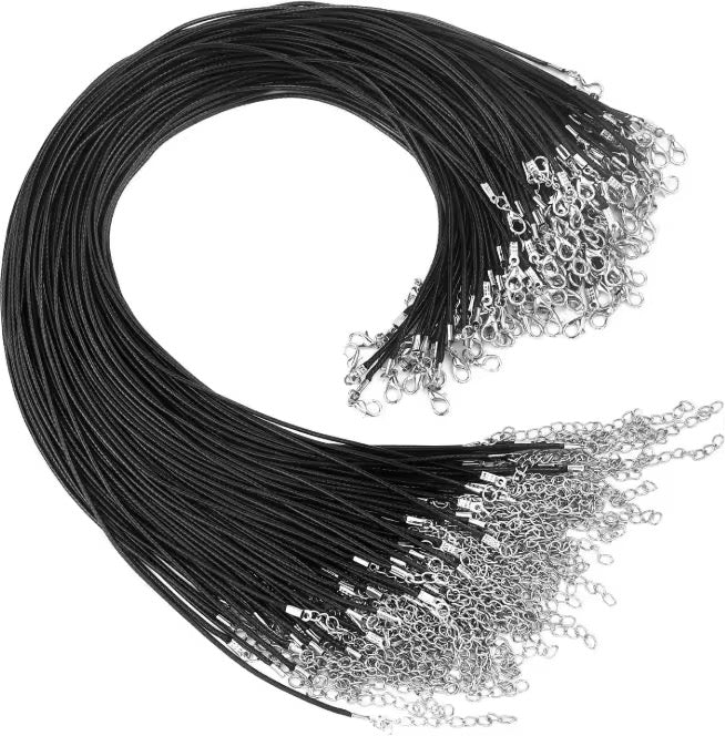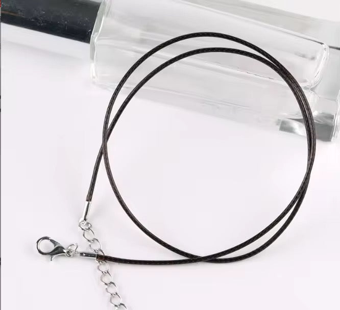 RC 58 Black leather chain 1.5mm (1 pc ) with silver clasp and extension (1PC)
