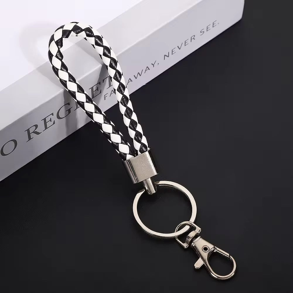 BBB 183 (d) Black and White Clipper Keychain Vintage Leather - buckle keychain tag with Clasp ( 1 pc )