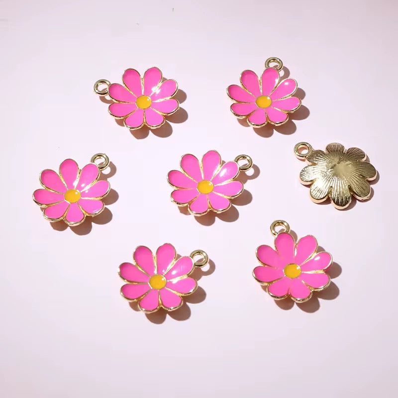 BBB 227 (e) Bright Pink Cute Daisy Flower enamel charm ( 1 pc ) Tarnish Resistant ( 19:15 mm )