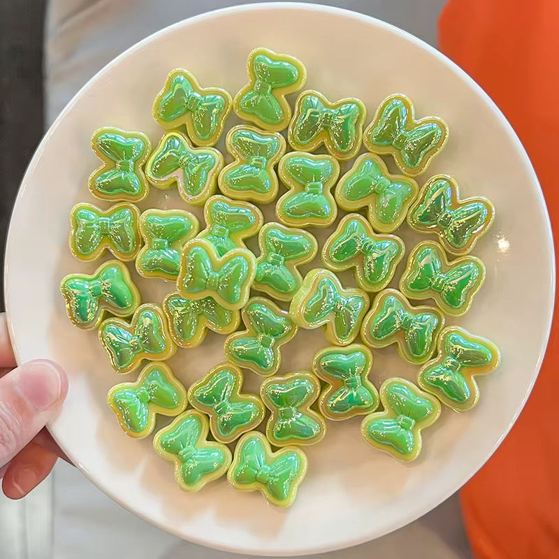 BBB 253 (b) Green Bow Double colour Luminous Shiny Bead ( 1 pc ) UV Plated Acrylic ( 16 mm )