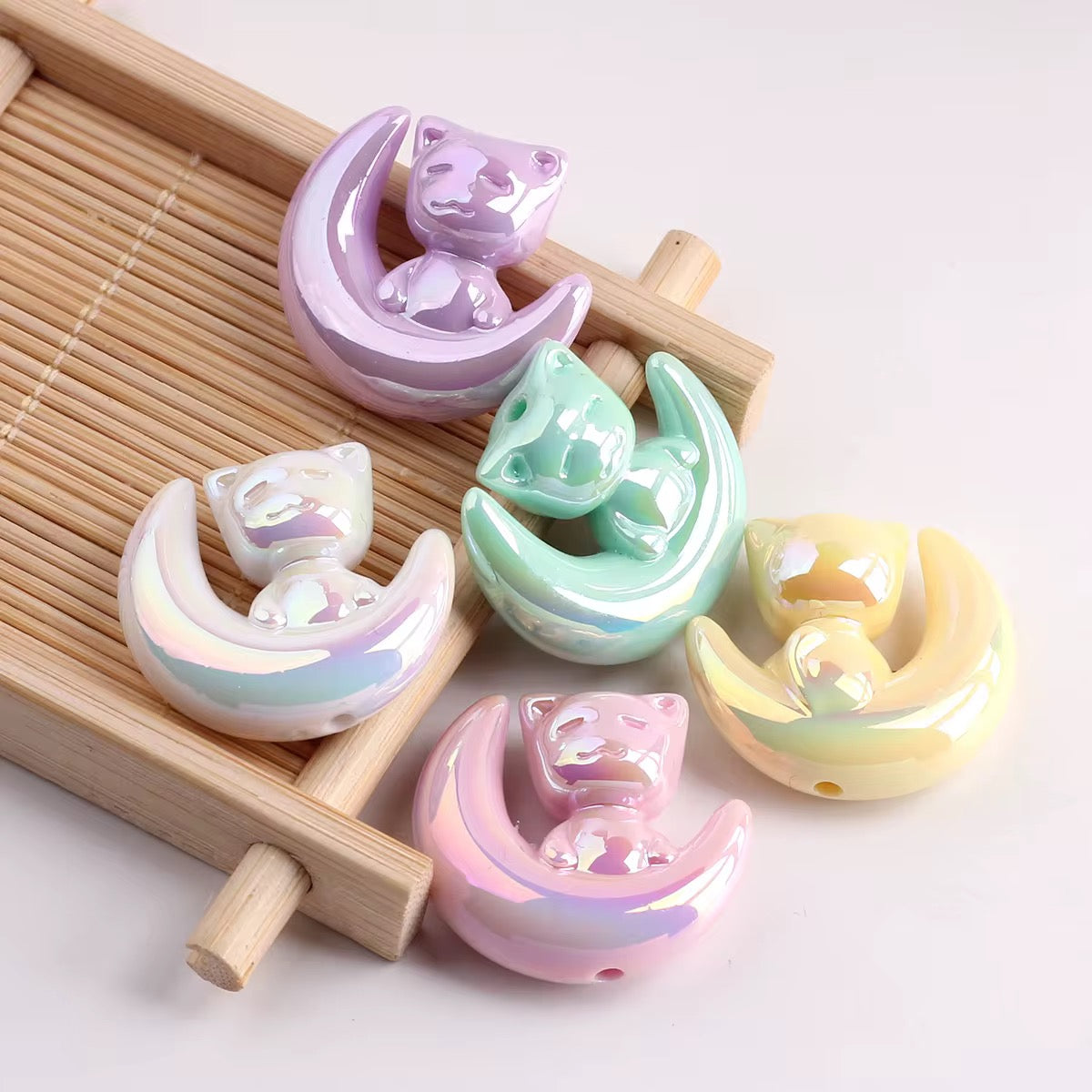 BBB 265 (e) Ink Blue Cat Moon Luminous Shiny Big Bead ( 1 pc ) UV Plated Acrylic ( 28 mm )