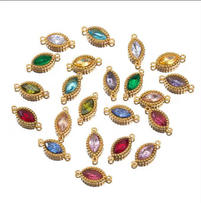BBB 266 (c) Ink Blue Zircon Connector 18k Gold PVD plated 316 stainless steel ( 1 pc ) Anti tarnish ( 6:13 mm )