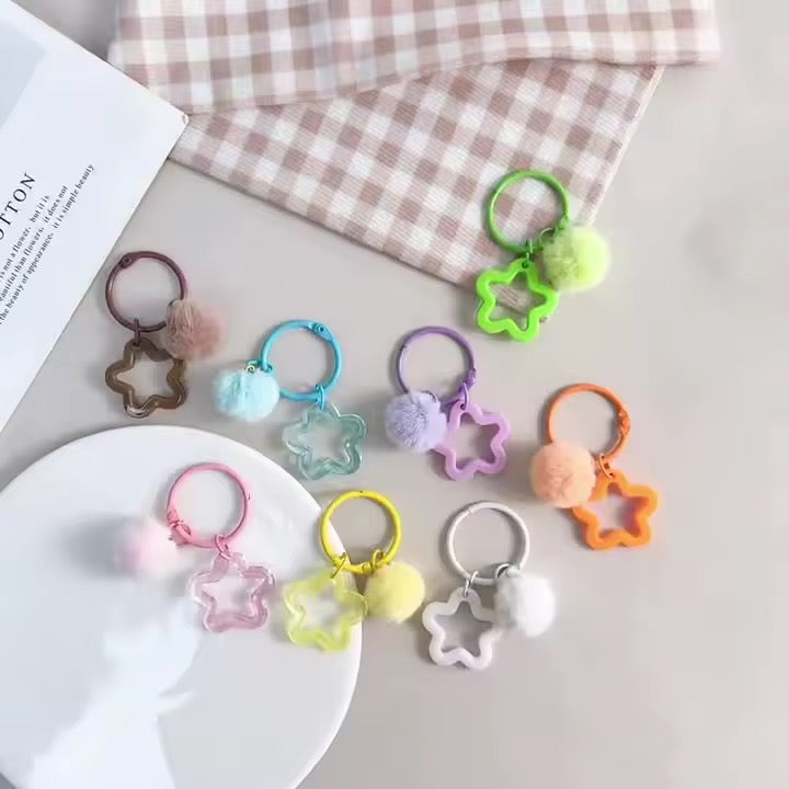 BBB 271 (d) Pink Star Keychain with Fur Ball - Keyring Clasp( 1 pc ) ( 3:3:2 cm )