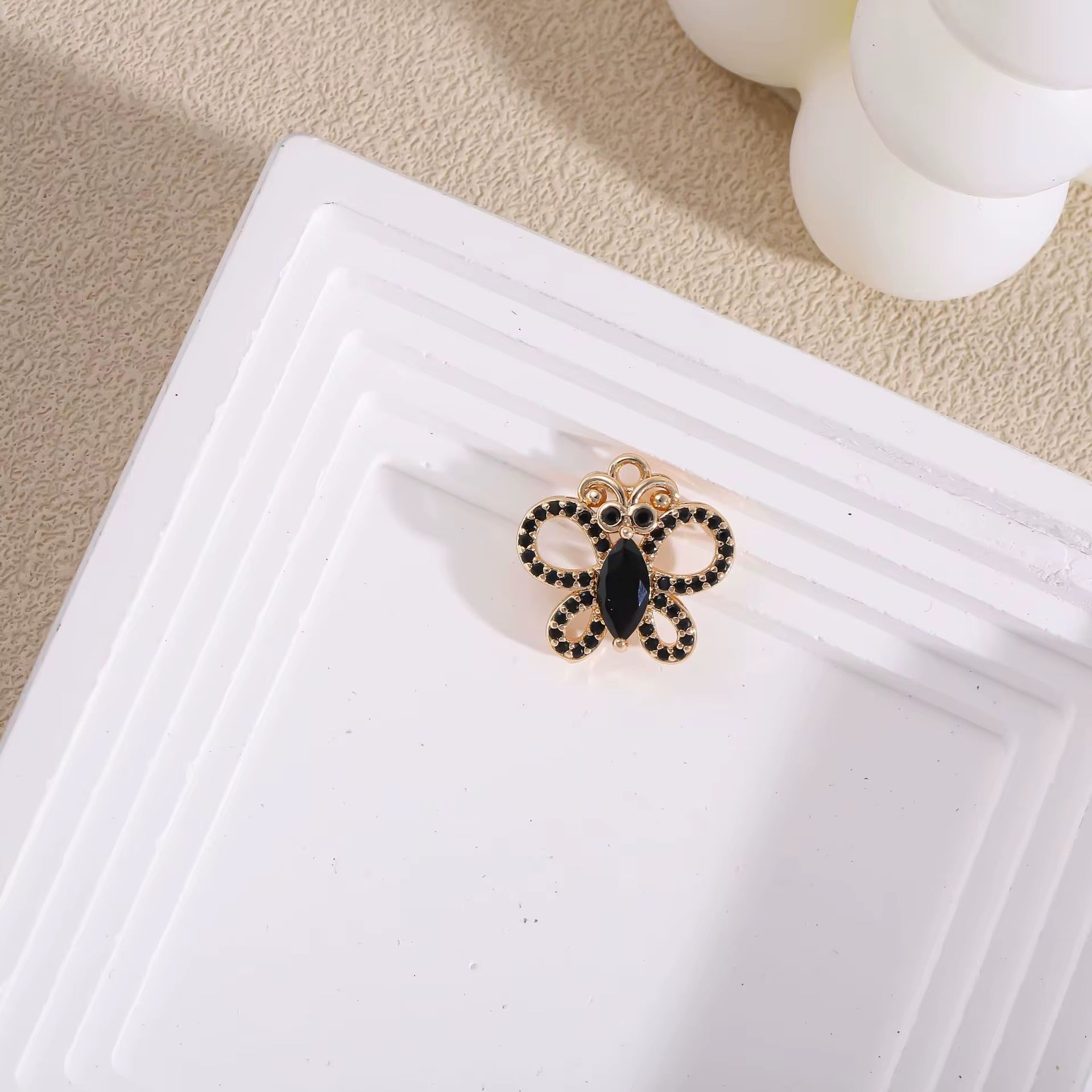 BBB 280 (c) Black Butterfly 14k gold plated Zircon crystal charm ( 1 pc ) Anti tarnish ( 16:16.5 mm )