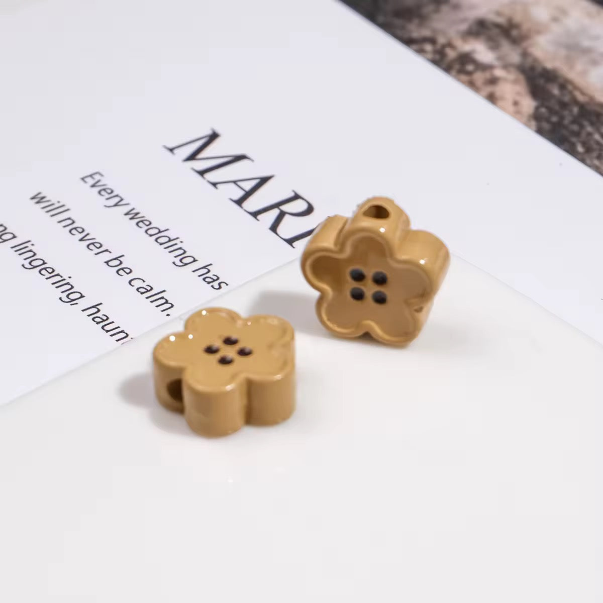 BBB 329 (b) Brown Floral Button Shiny Bead ( 1 pc ) UV Plated Acrylic ( 12 mm )
