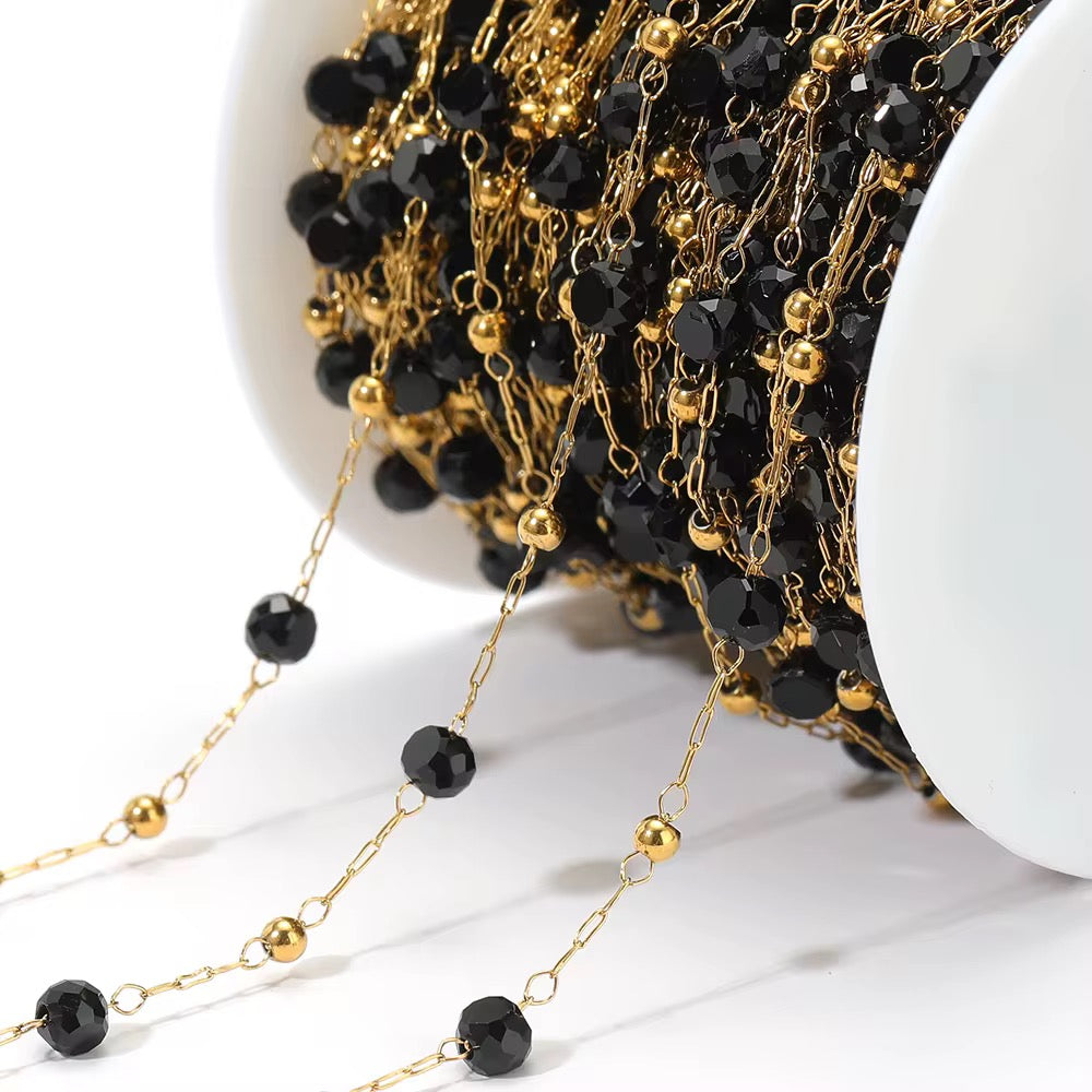 CN 343 Black round crystal Handmade gold 316 Stainless steel chain ( 1 feet ) Anti tarnish