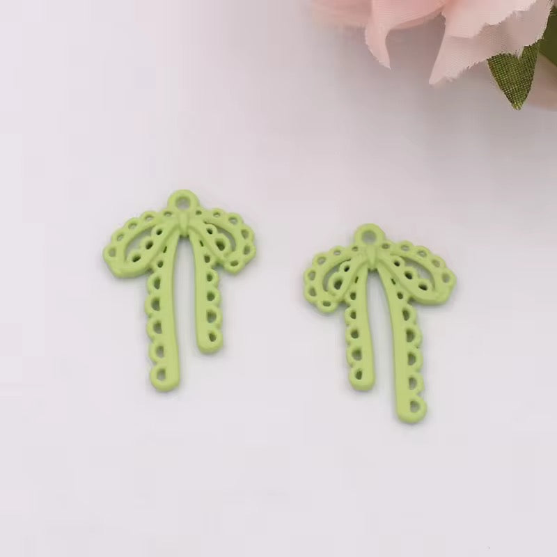 BBB 342 (h) Light Green Bow Spray painted Charm ( 1 pc ) High Quality Alloy ( 28:20 mm )