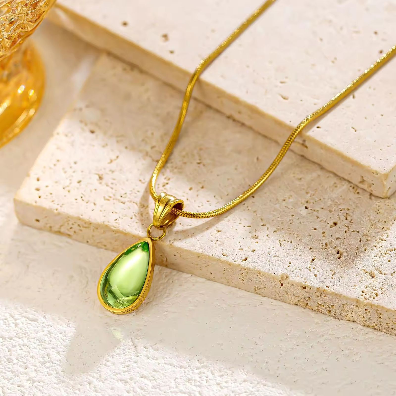 SJ 457 - Green Waterdrop Glass Necklace - 18k Gold PVD plated stainless steel - Anti tarnish