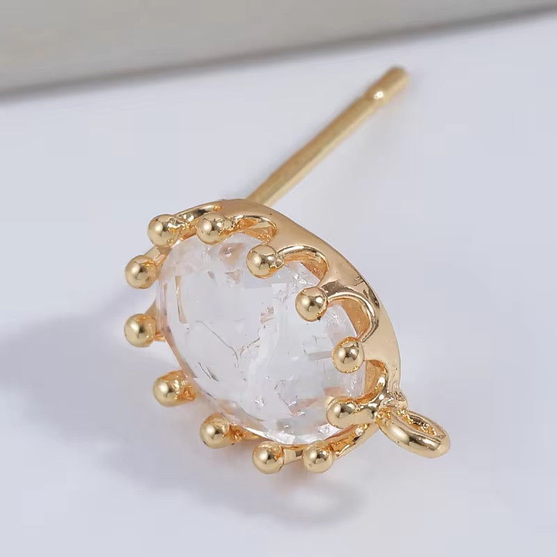 CZ 2575 Clear Faceted Oval Zircon stud 18k gold plated ( 2 pc ) - anti tarnish
