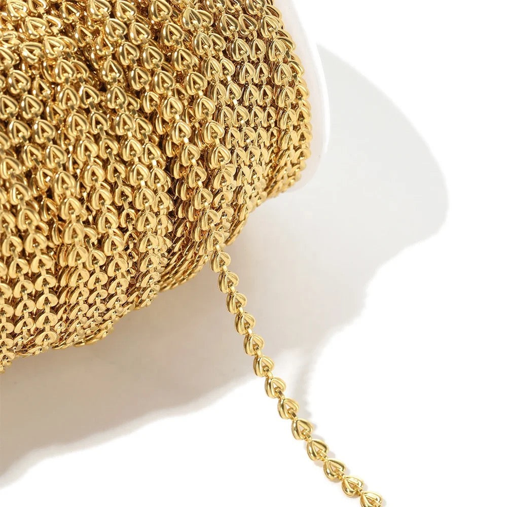 CN 129 Love Heart rolo Gold Stainless steel chain - per feet - Anti tarnish
