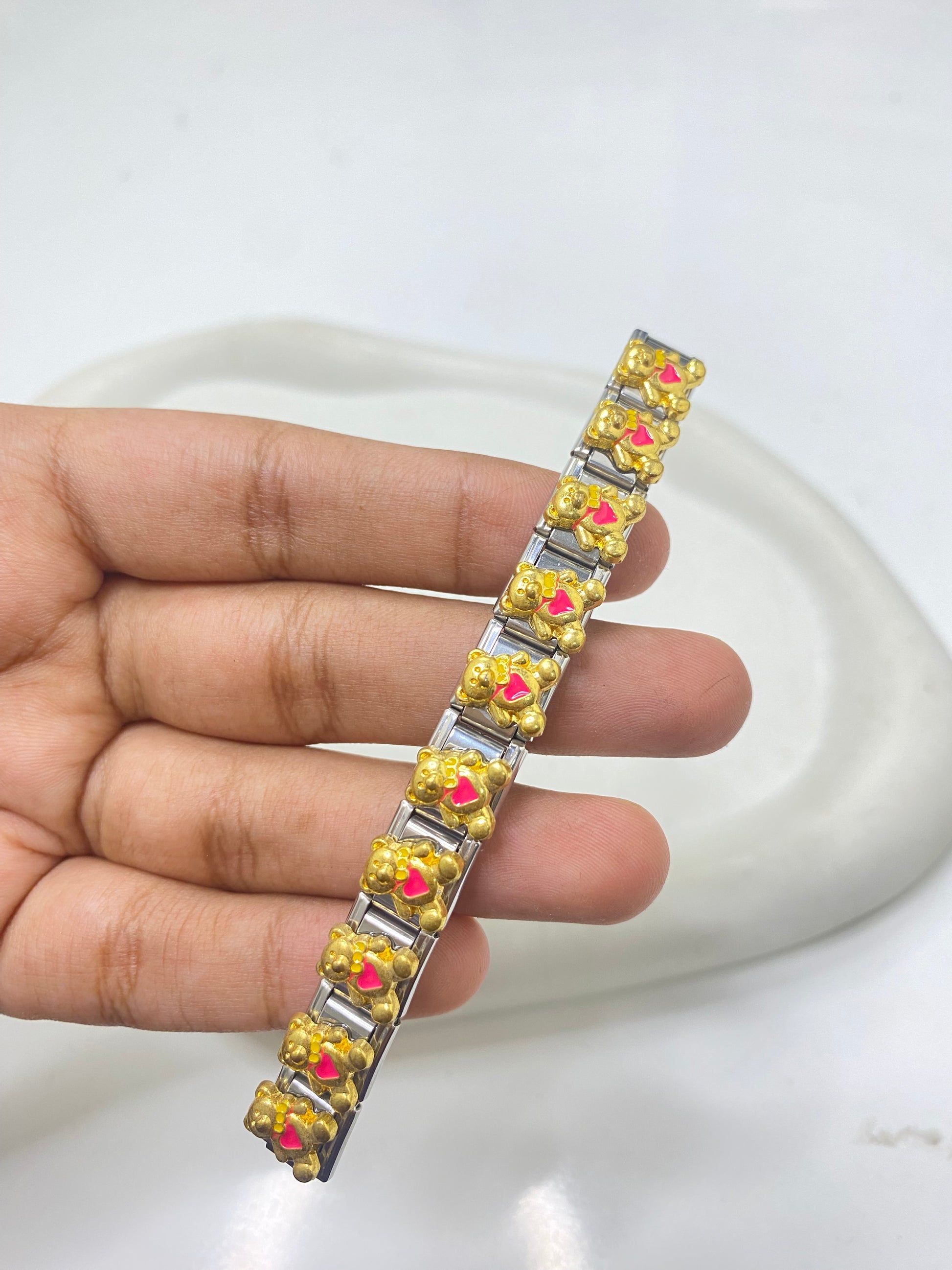 IC 08 Teddy Heart Gold italian charm bracelet - stainless steel ( 1 pc ) Anti tarnish