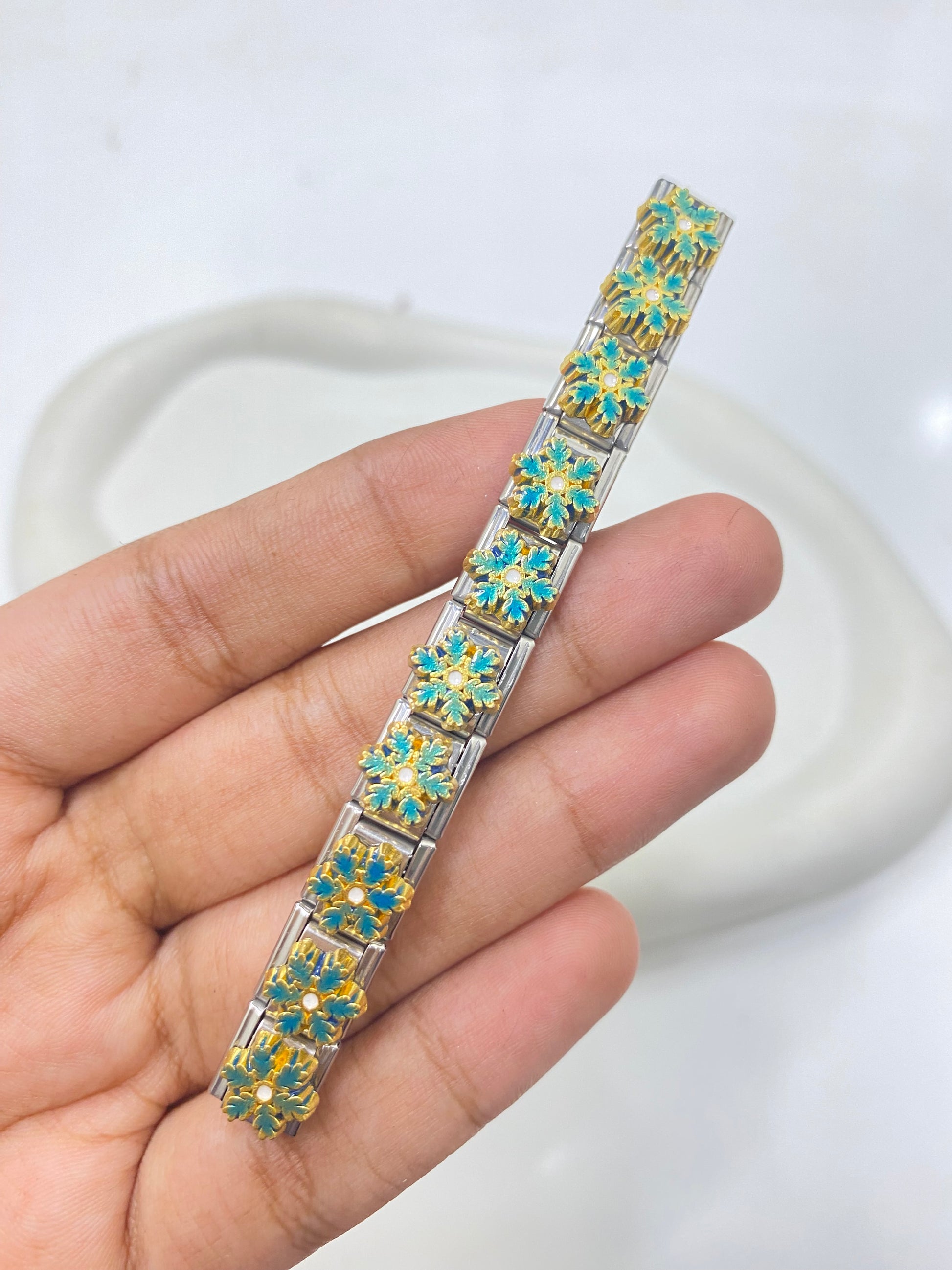 IC 28 Green Snowflake Italian charm bracelet - stainless steel ( 1 pc ) Anti tarnish