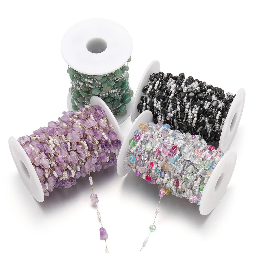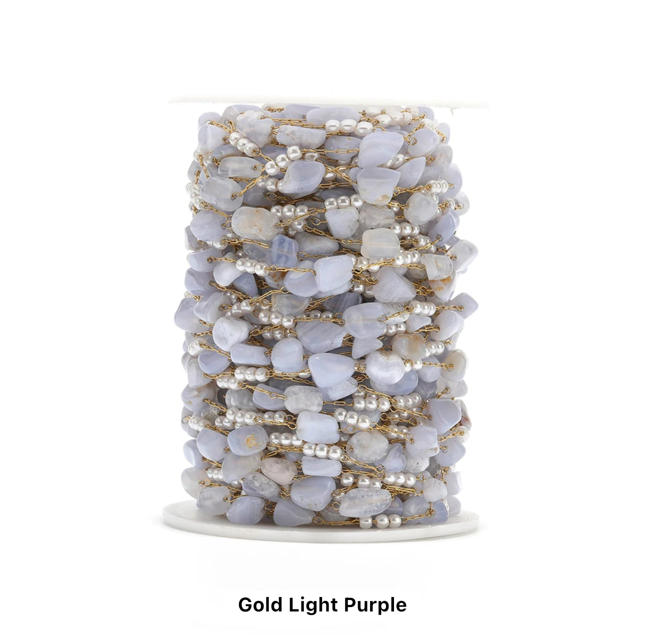 CN 148 Transparent light purple Pearl stone Stainless steel chain - per feet - Anti tarnish