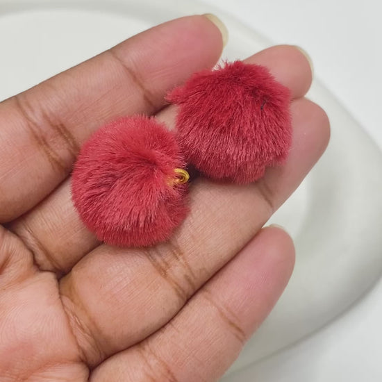 PP 1628 Maroon Fluffy Pom Pom with hook ( 1 pc )