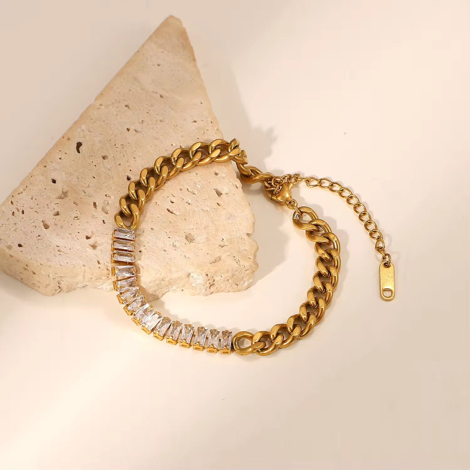 SJ 400 Zircon Cuban chain bracelet - 18k Gold PVD plated stainless steel - Anti tarnish - Wholesale