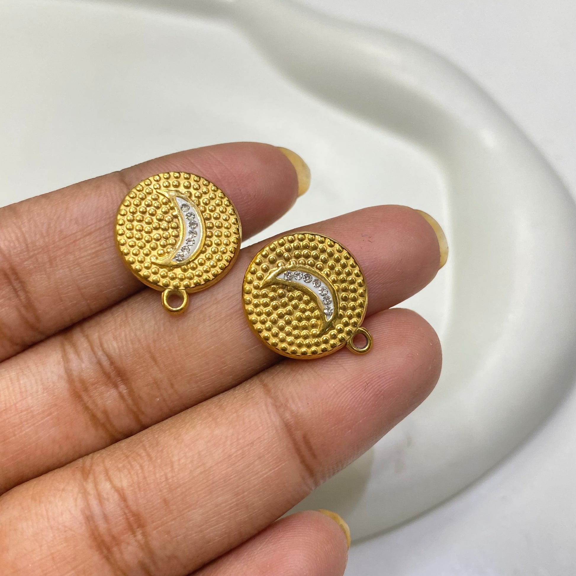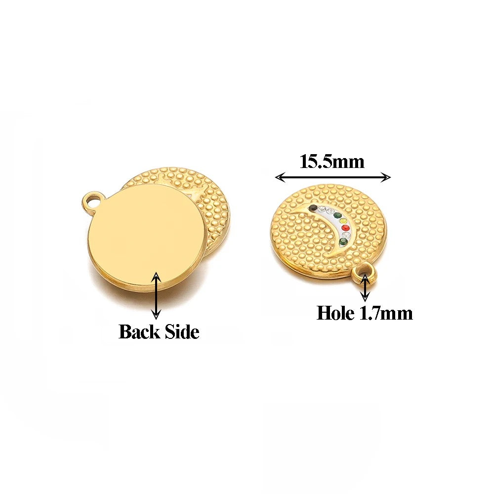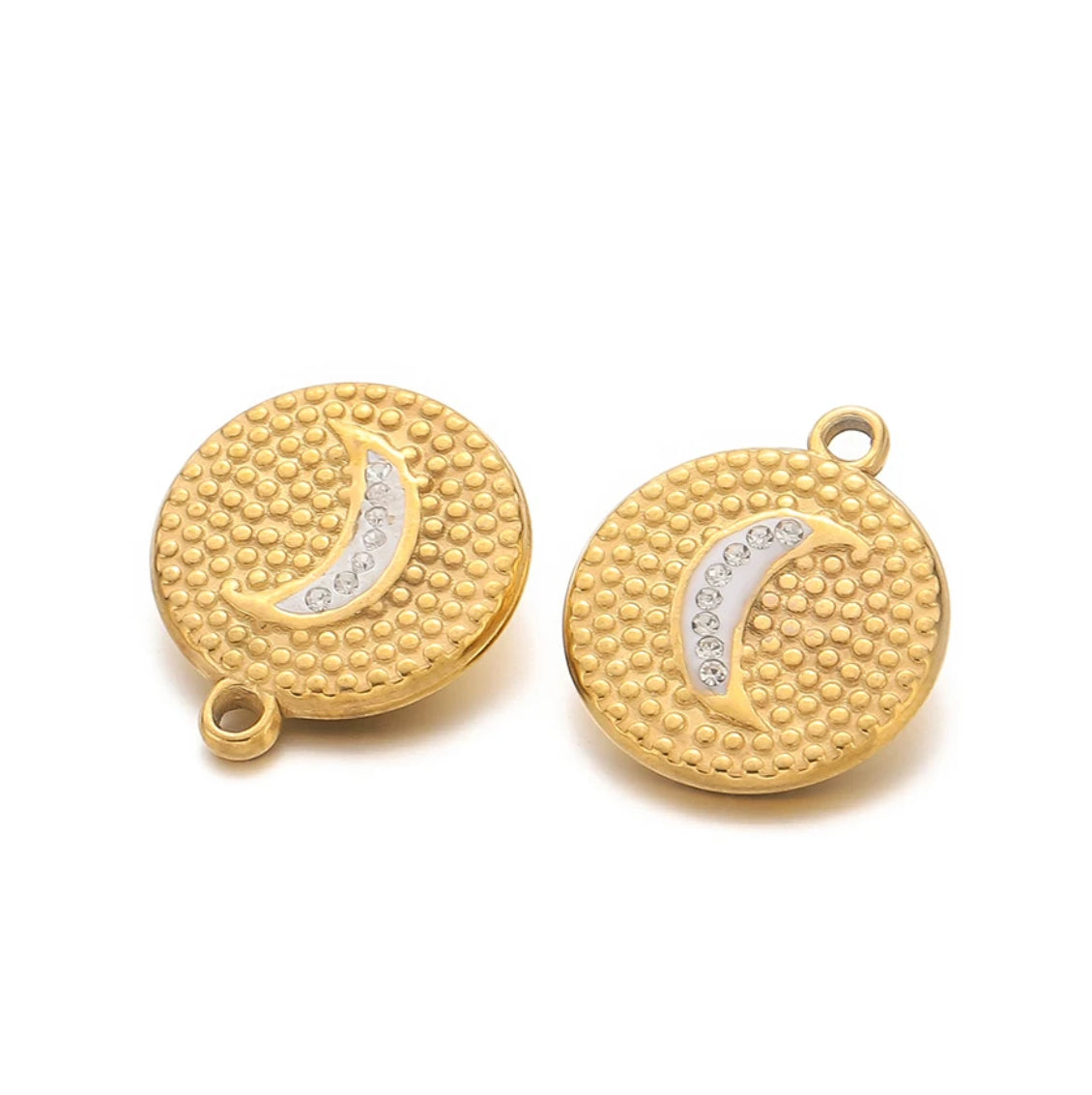 SS 1157 - Moon round charm 18k gold plated stainless steel - per piece - anti tarnish