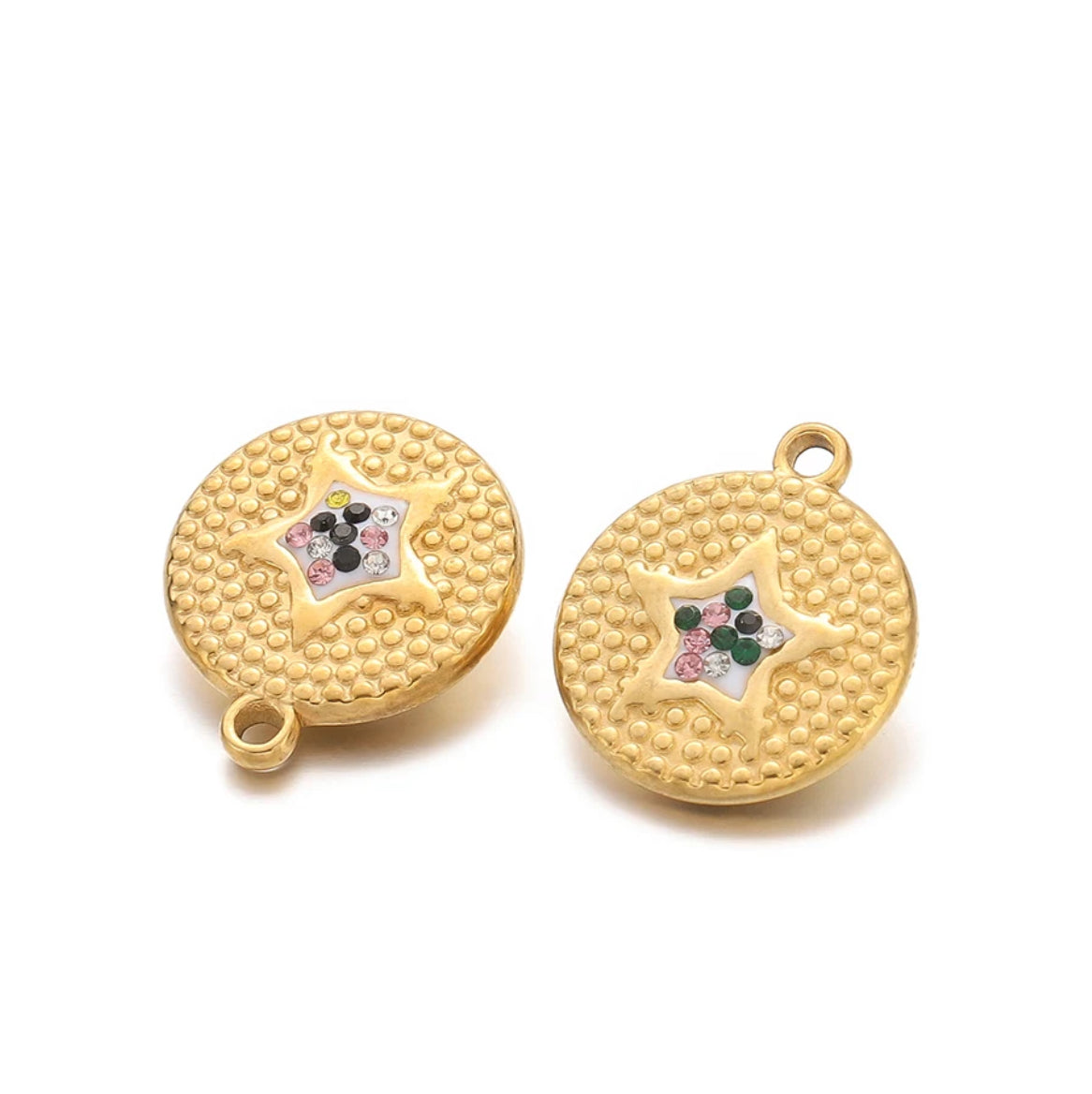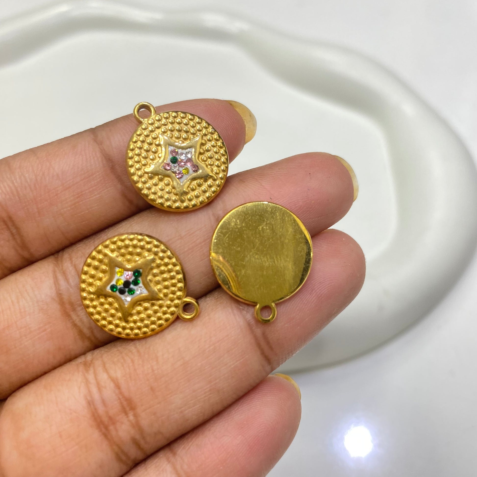 SS 1158 - Star round charm 18k gold plated stainless steel - per piece - anti tarnish