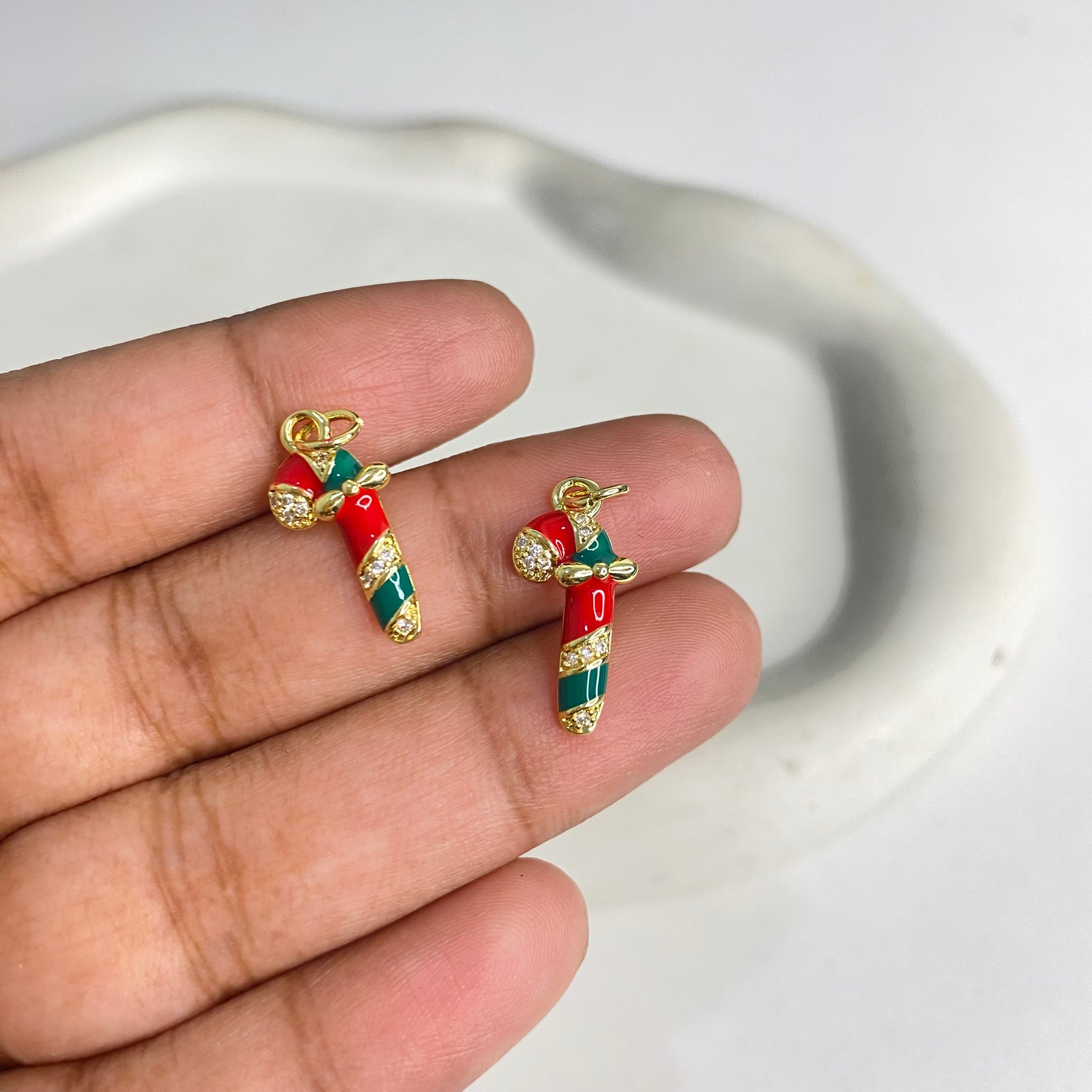SS 1181 Candy Cane Christmas Zircon charm 18k gold plated ( 1 pc ) Anti tarnish ( 19:9 mm )