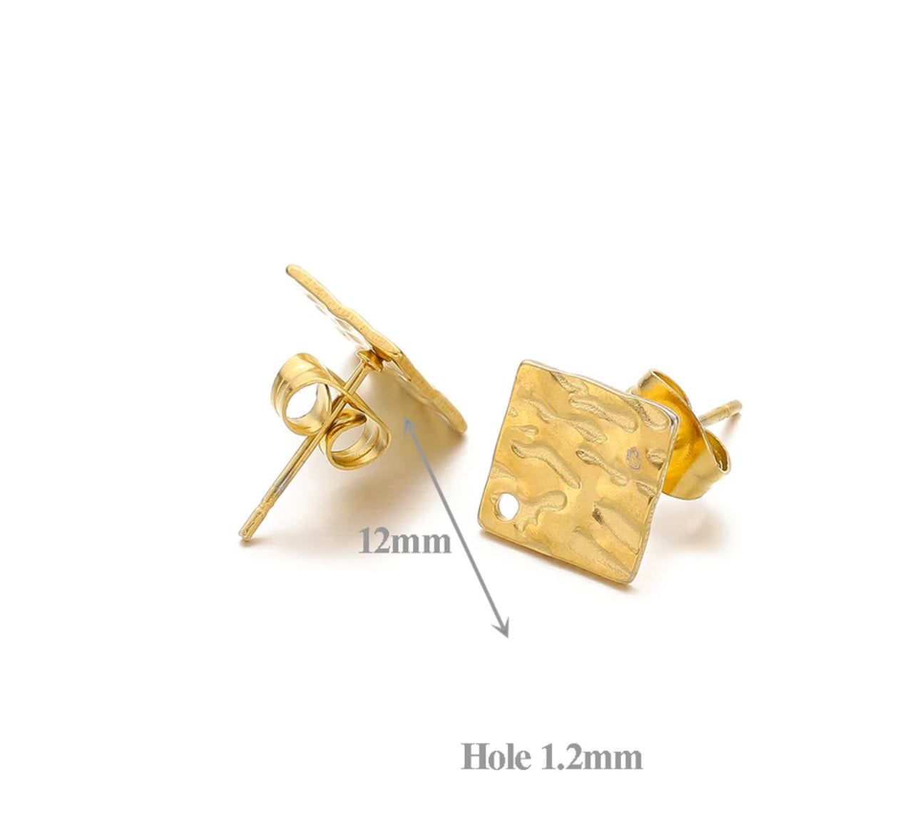 SS 1189 - square stud - 18k gold plated stainless steel - per pair - anti tarnish