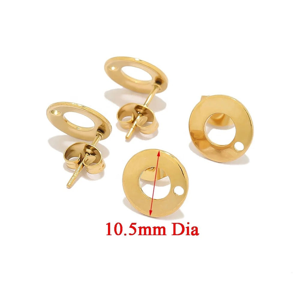 SS 1191 - round stud - 18k gold plated stainless steel - per pair - anti tarnish
