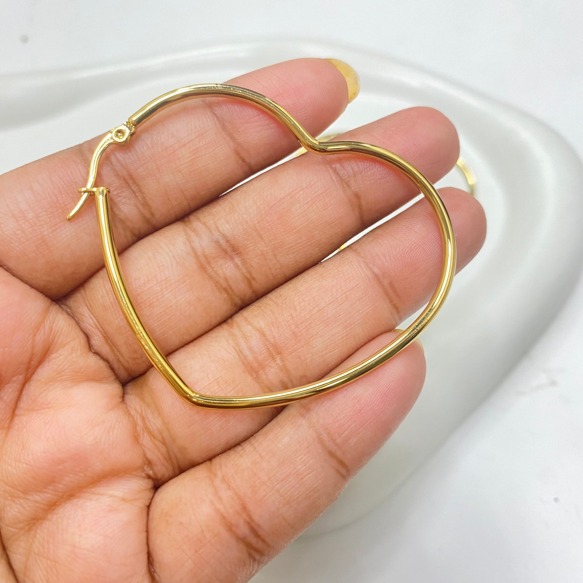 SS 1196 - heart geometric hoops - 18k gold plated stainless steel - per pair - anti tarnish
