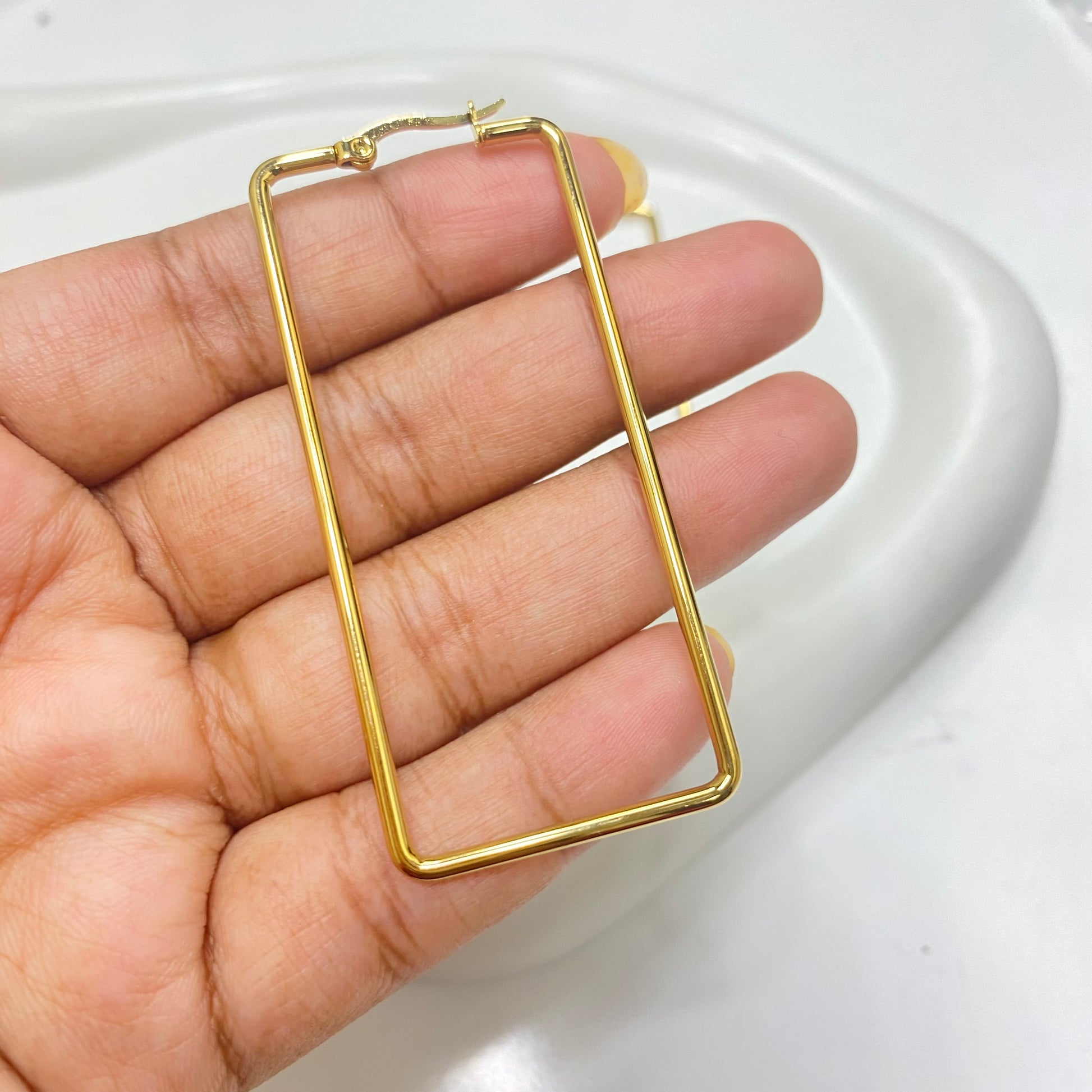 SS 1197 - Rectangle geometric hoops - 18k gold plated stainless steel - per pair - anti tarnish