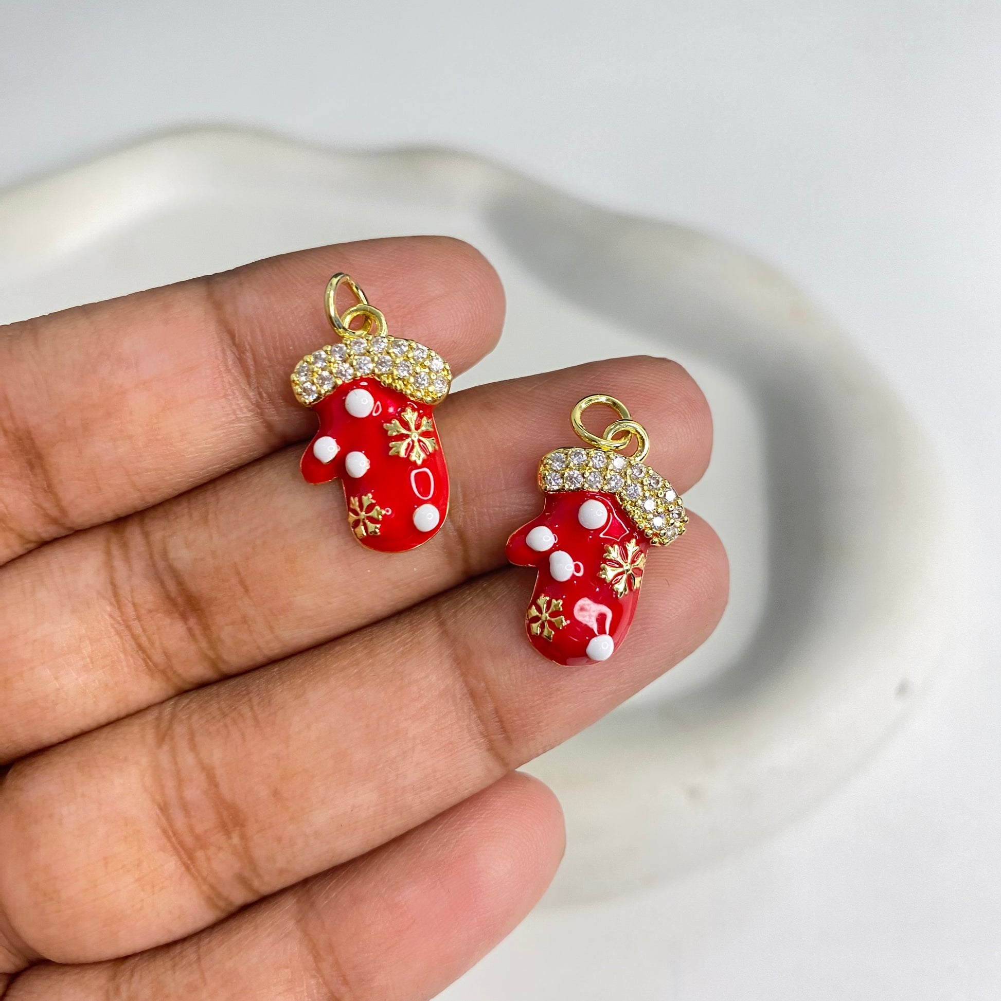 SS 1220 Mitten Christmas Zircon charm 18k gold plated ( 1 pc ) Anti tarnish ( 19:13 mm )