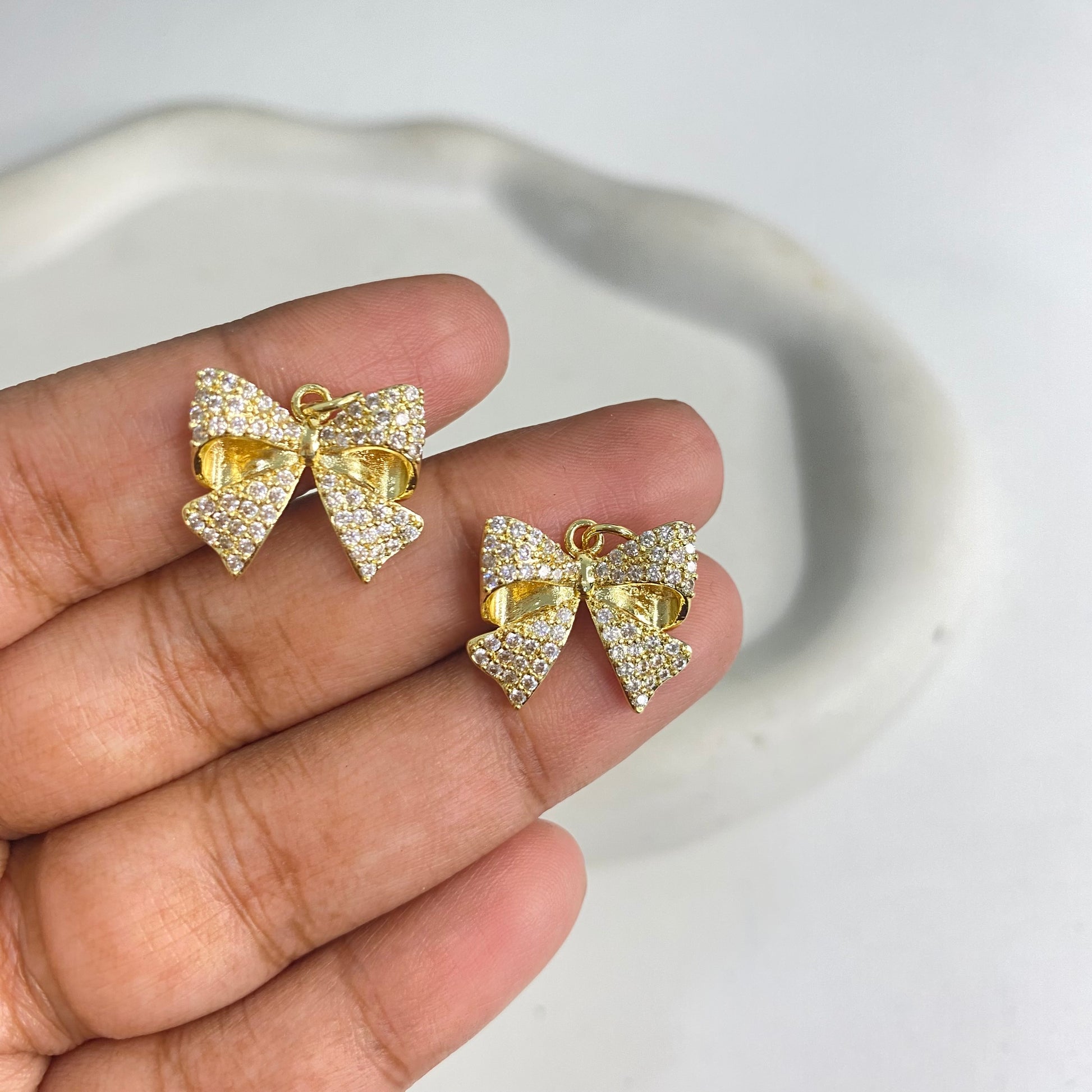 SS 1223 Bow Christmas Zircon charm 18k gold plated ( 1 pc ) Anti tarnish ( 16:18 mm )
