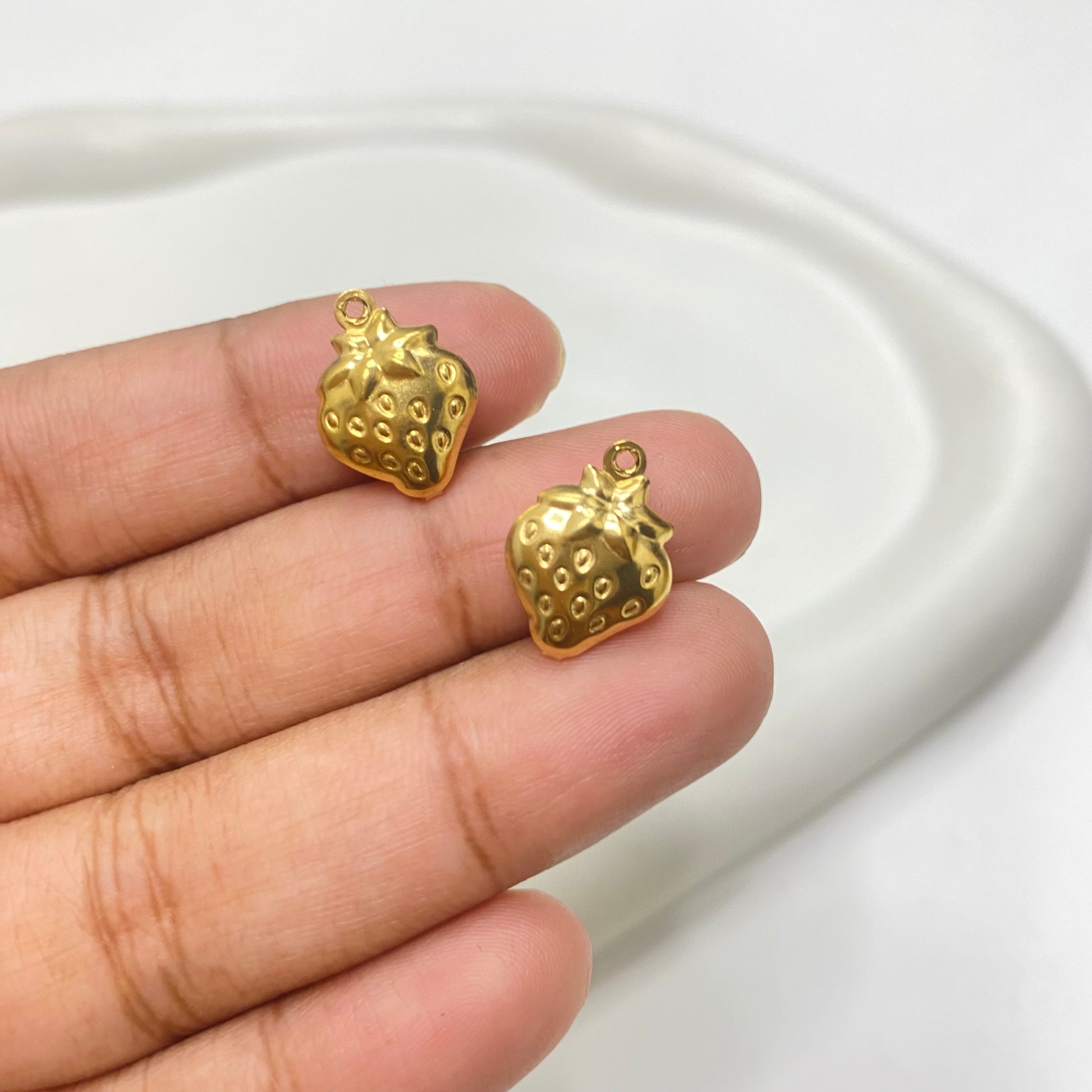 SS 1299 Strawberry charm 18k gold PVD plated stainless steel ( 1 pc ) anti tarnish