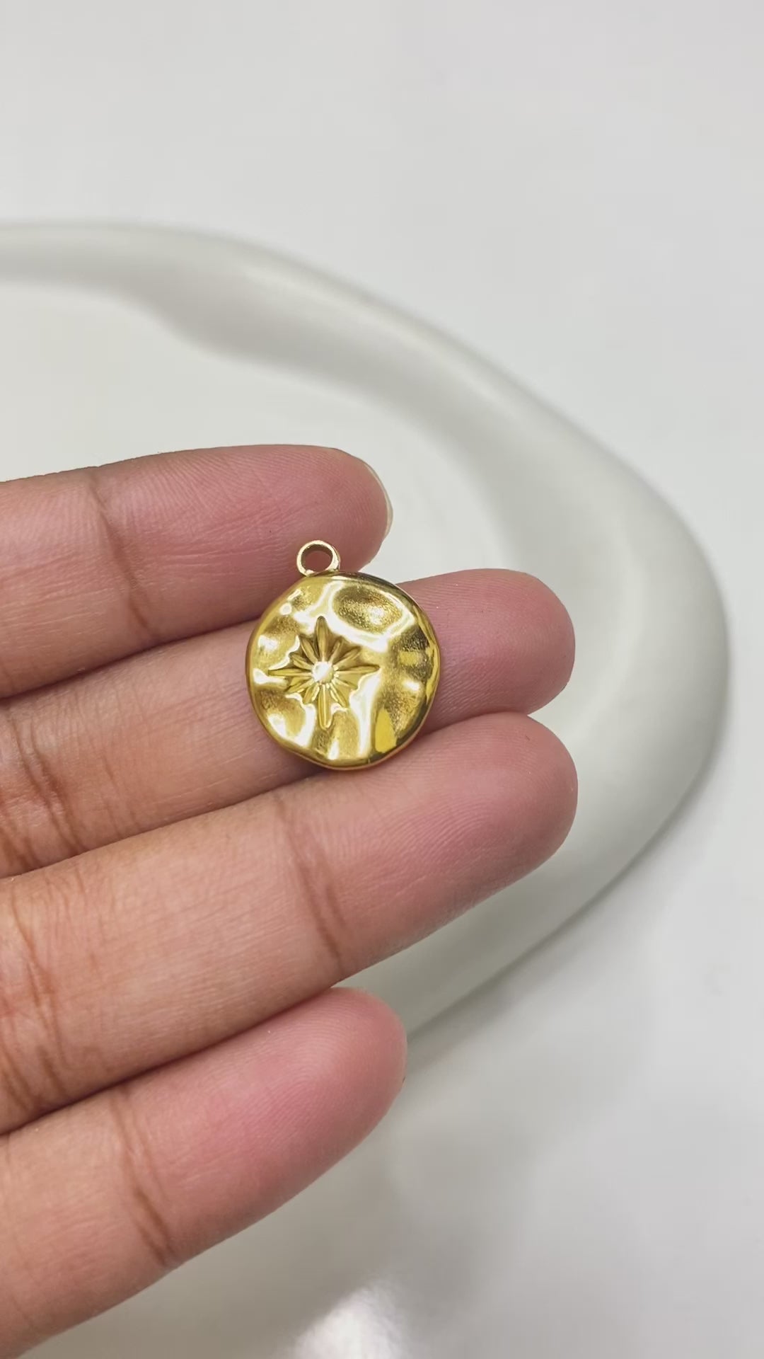 SS 1541 Round sparkle charm 18k gold plated stainless steel ( 1 pc ) - anti tarnish