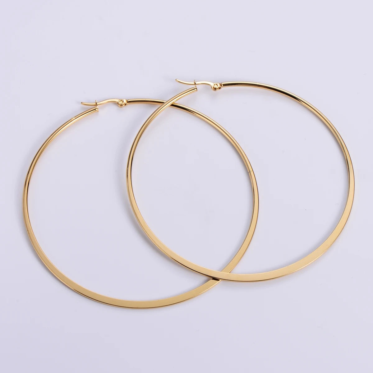SS 1395 Round geometric hoops - 18k gold plated stainless steel - per pair - anti tarnish
