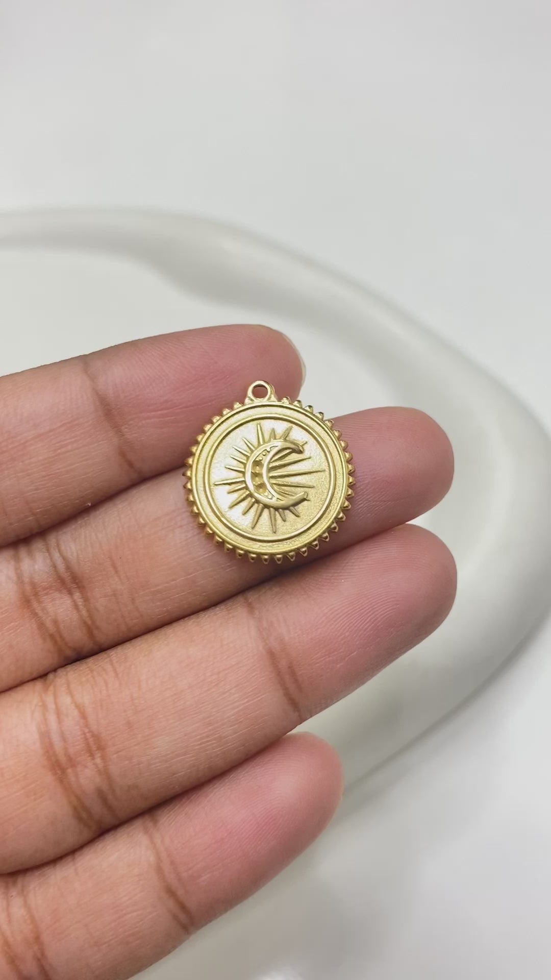 SS 1547 Round moon charm 18k gold plated stainless steel ( 1 pc ) - anti tarnish