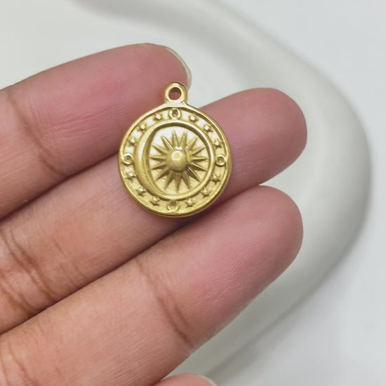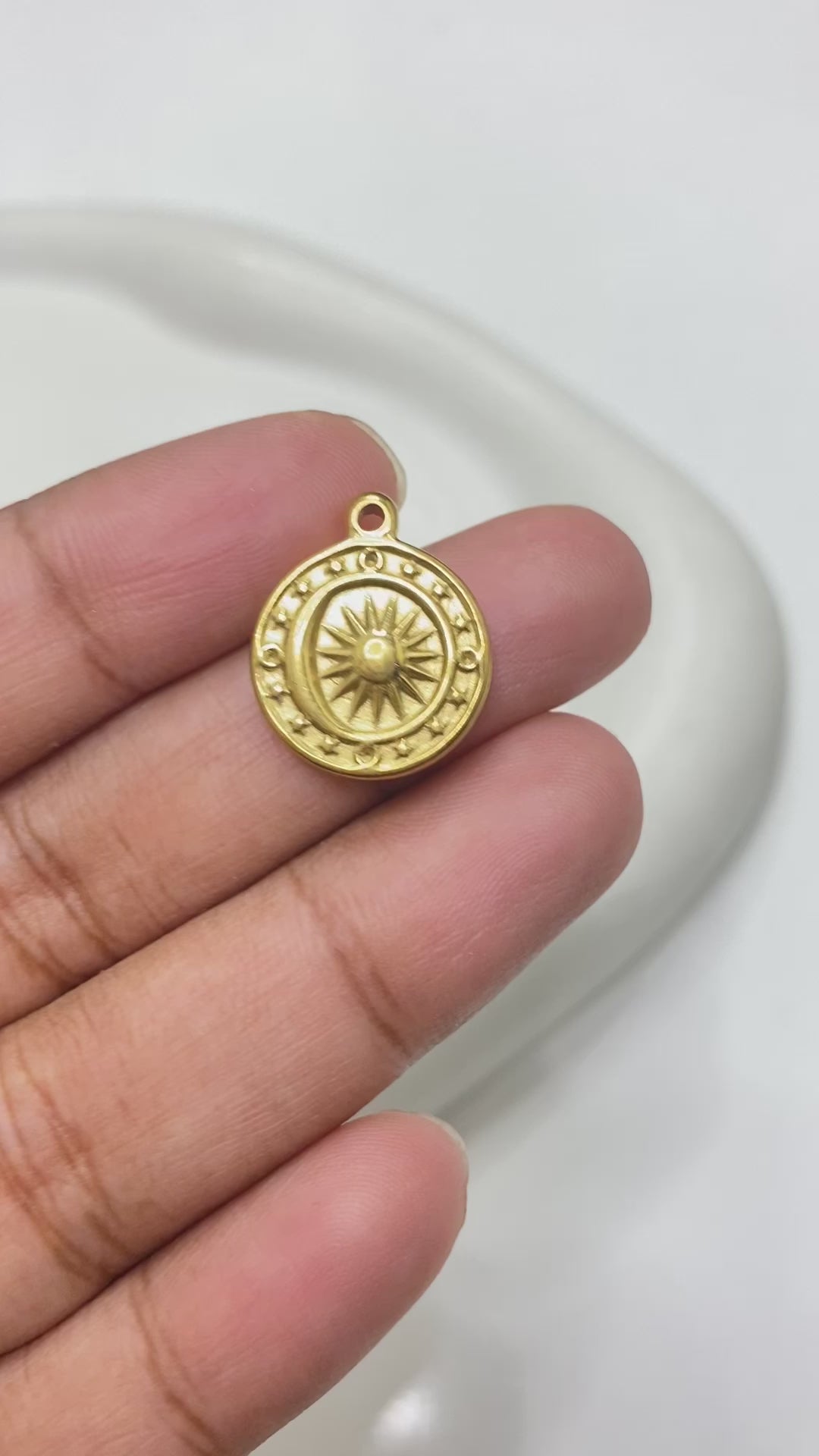 SS 1548 Round Sun charm 18k gold plated stainless steel ( 1 pc ) - anti tarnish