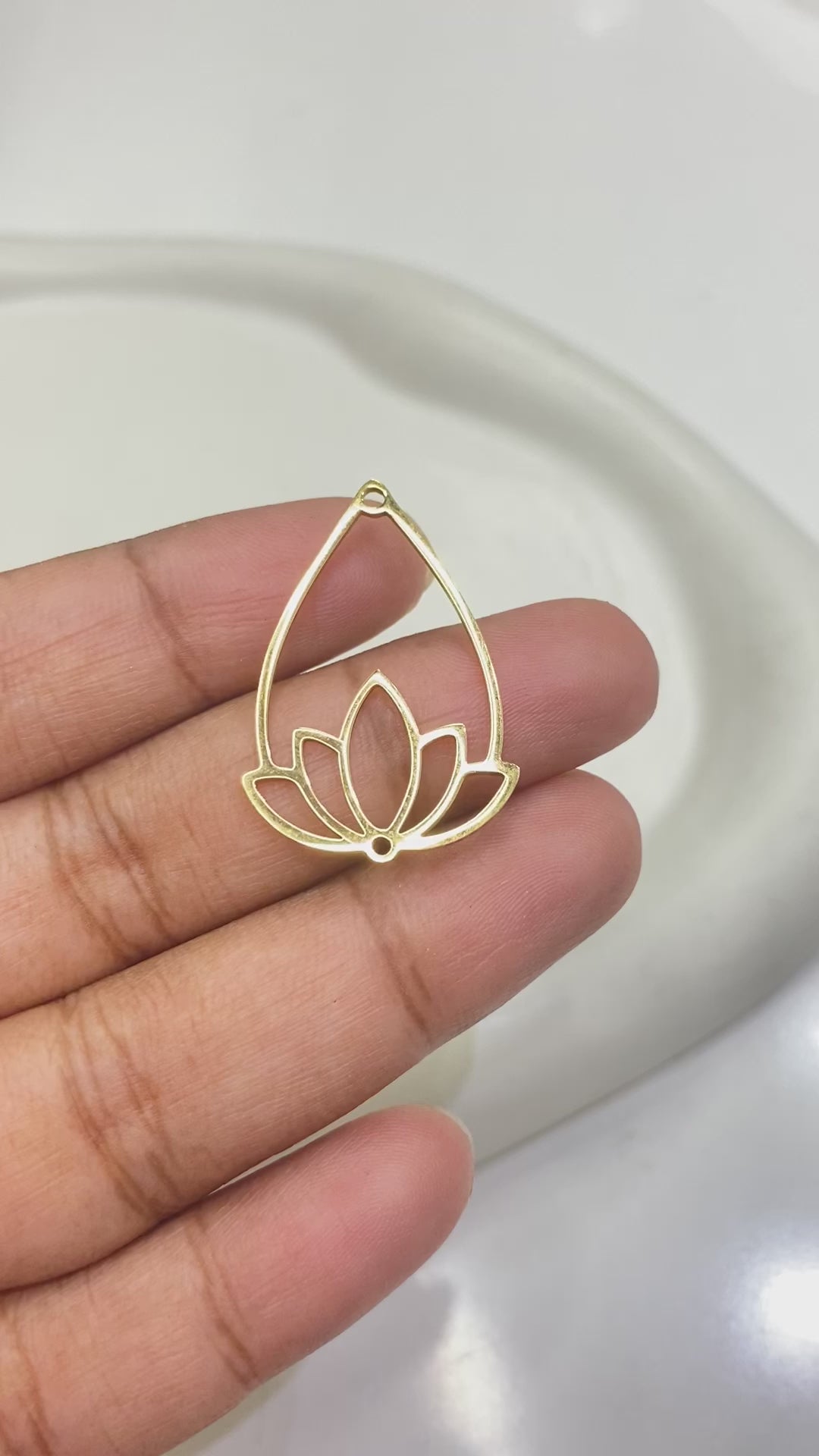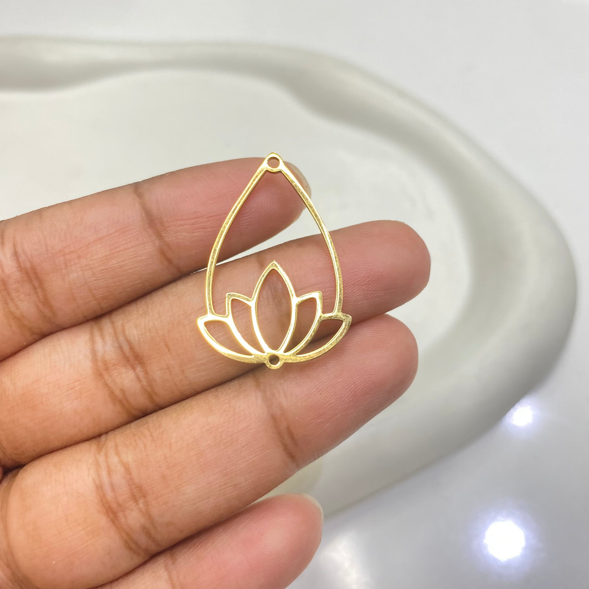 SS 1586 lotus teardrop bezel 18k gold plated stainless steel ( 1 pc ) - anti tarnish