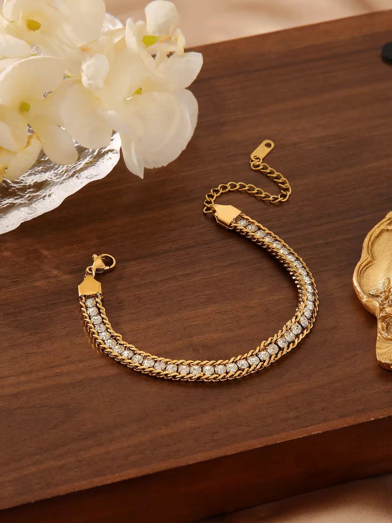 SJ 218 Zircon chain tennis bracelet -18k PVD plated stainless steel - Anti tarnish