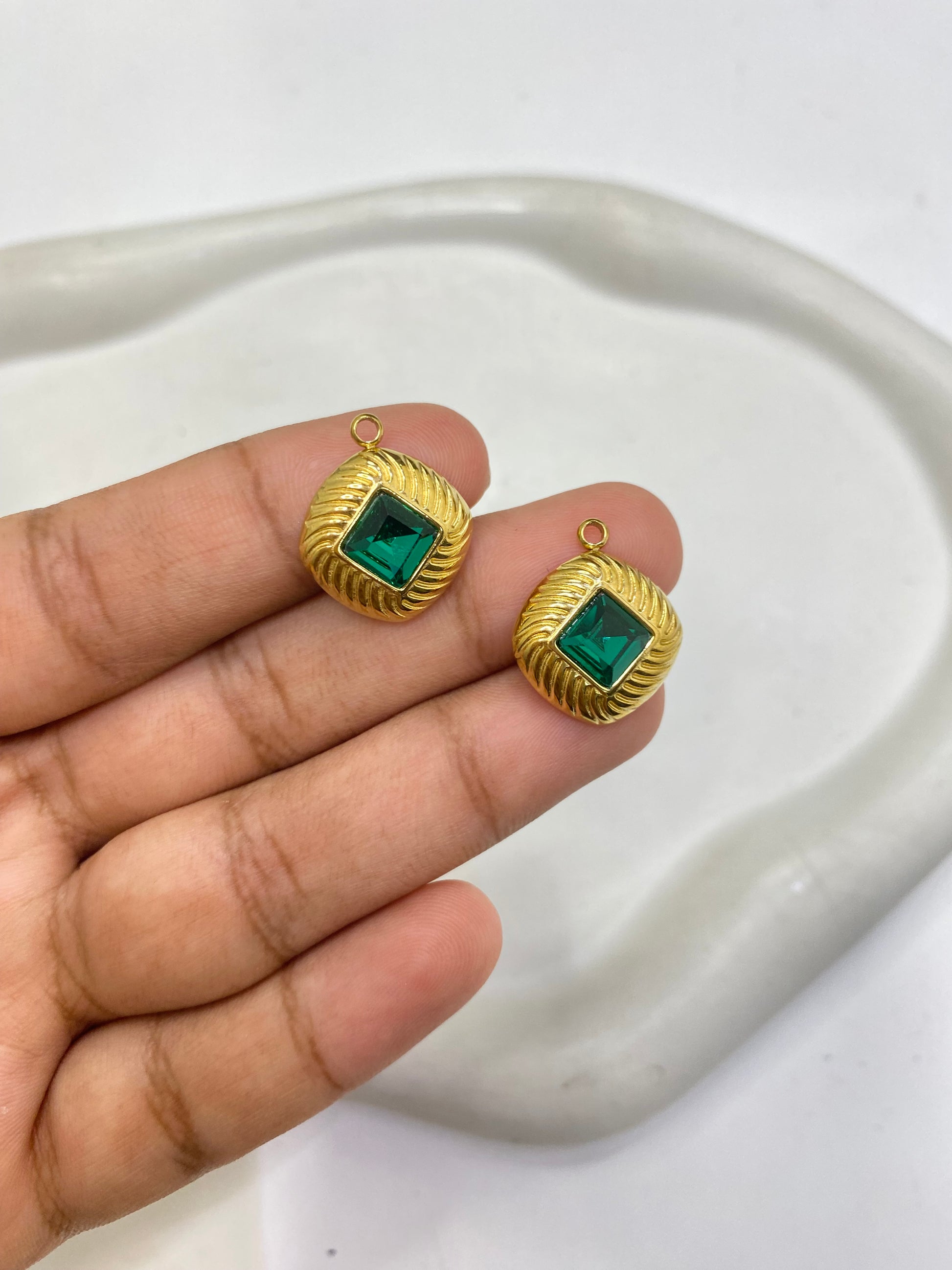 SS 2442 - Rectangle Zircon charm 18k gold plated Stainless steel ( 1 pc ) Anti tarnish