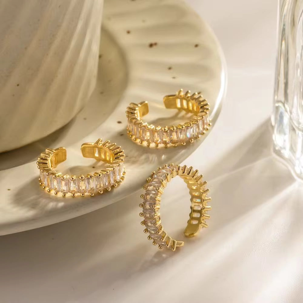 SJ 257 Diamond Zircon ring adjustable- 18k gold PVD plated stainless steel - Anti tarnish