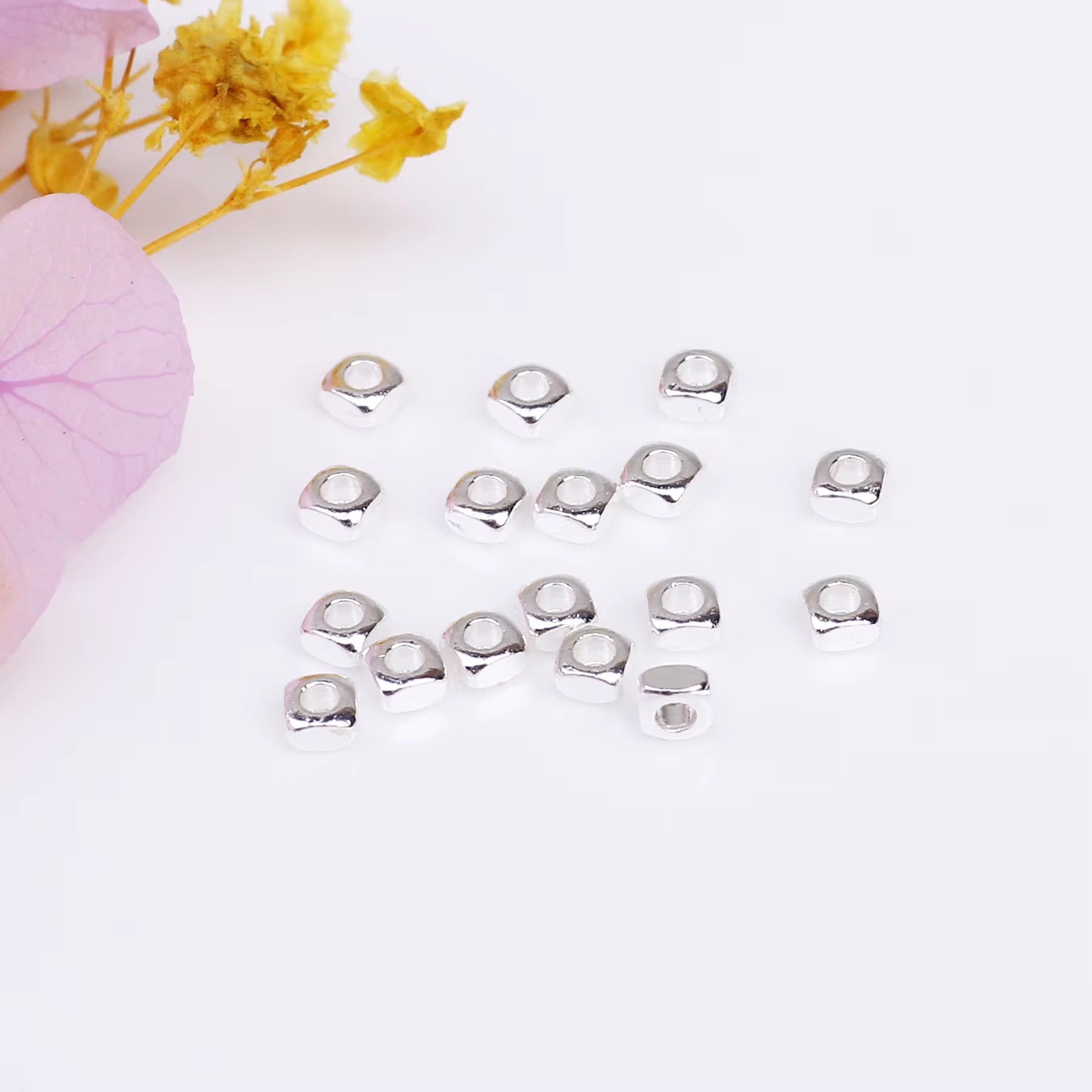 SS 2798 Tiny Square Spacer bead Silver plated ( 1 pc ) Anti tarnish ( 2 mm )