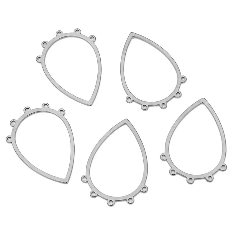 SS 2756 Teardrop Multi Hole Bezel Connector Silver plated stainless steel ( 1 pc ) anti tarnish