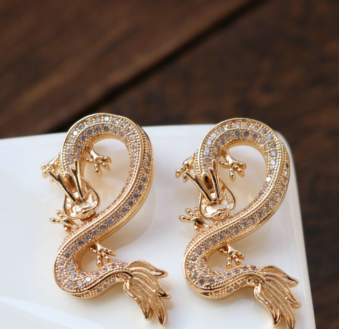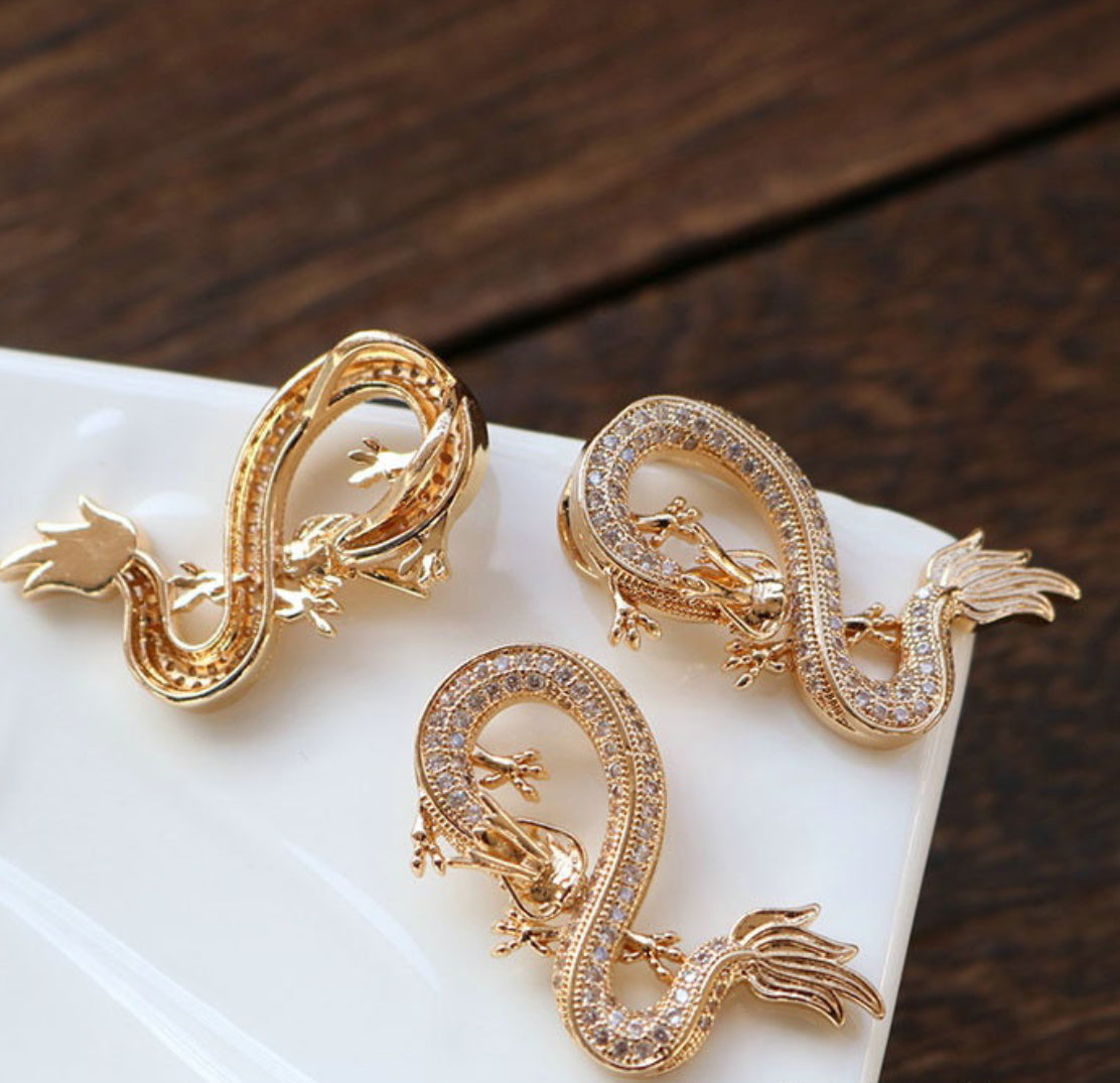 SS 2786 Dragon Big CZ Pendant 14k gold plated Zircon crystal ( 1 pc ) Anti tarnish