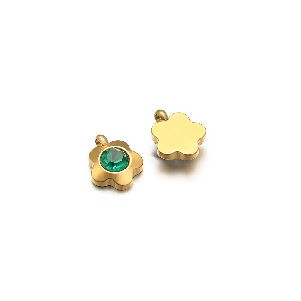 SS 2817 Green Zircon Flower charm 18k Gold plated stainless steel ( 1 piece ) Anti tarnish ( 7 mm )