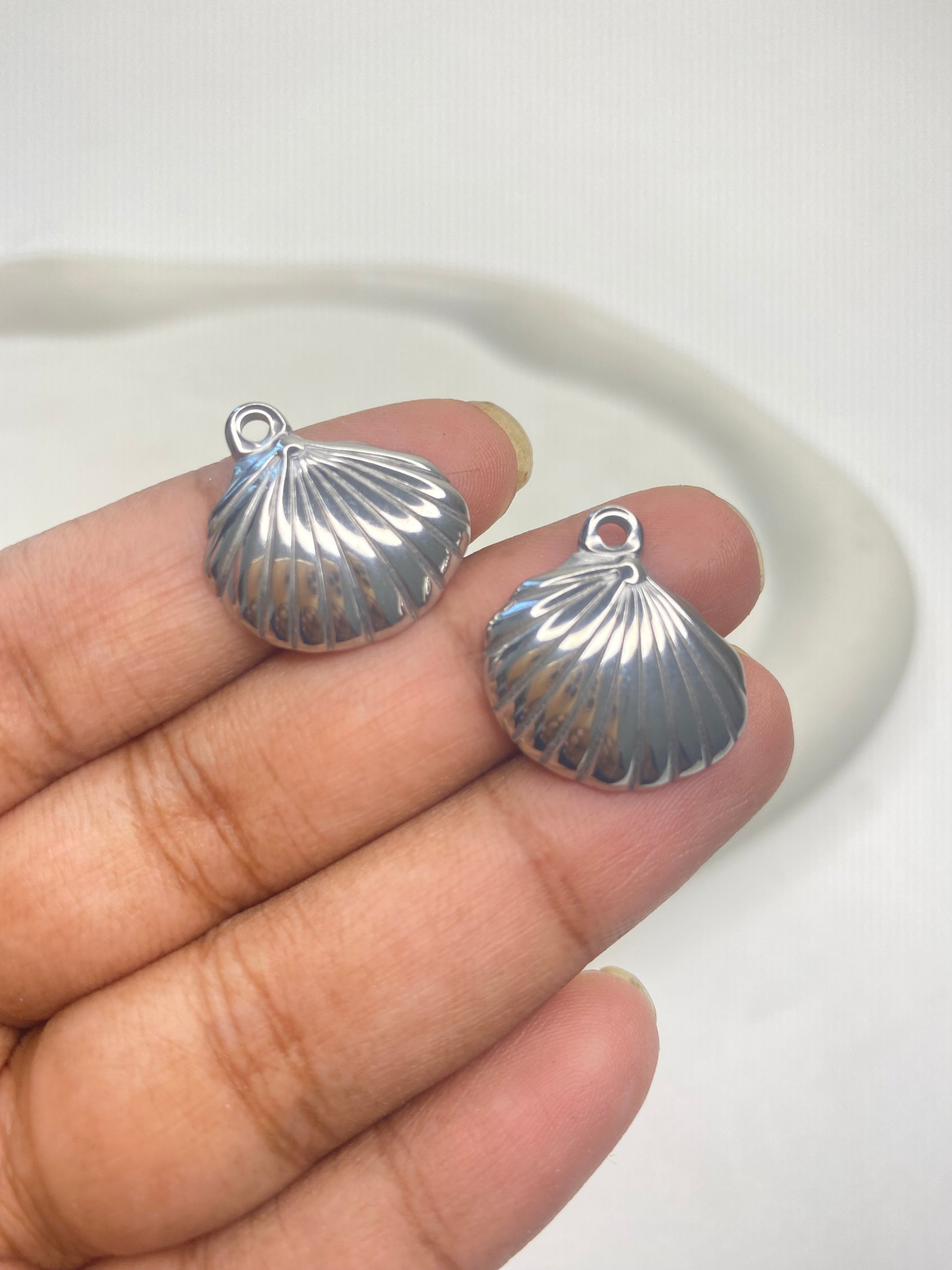 SS 2840 Shell charm Silver plated stainless steel ( 1 piece ) Anti tarnish ( 8:18 mm )