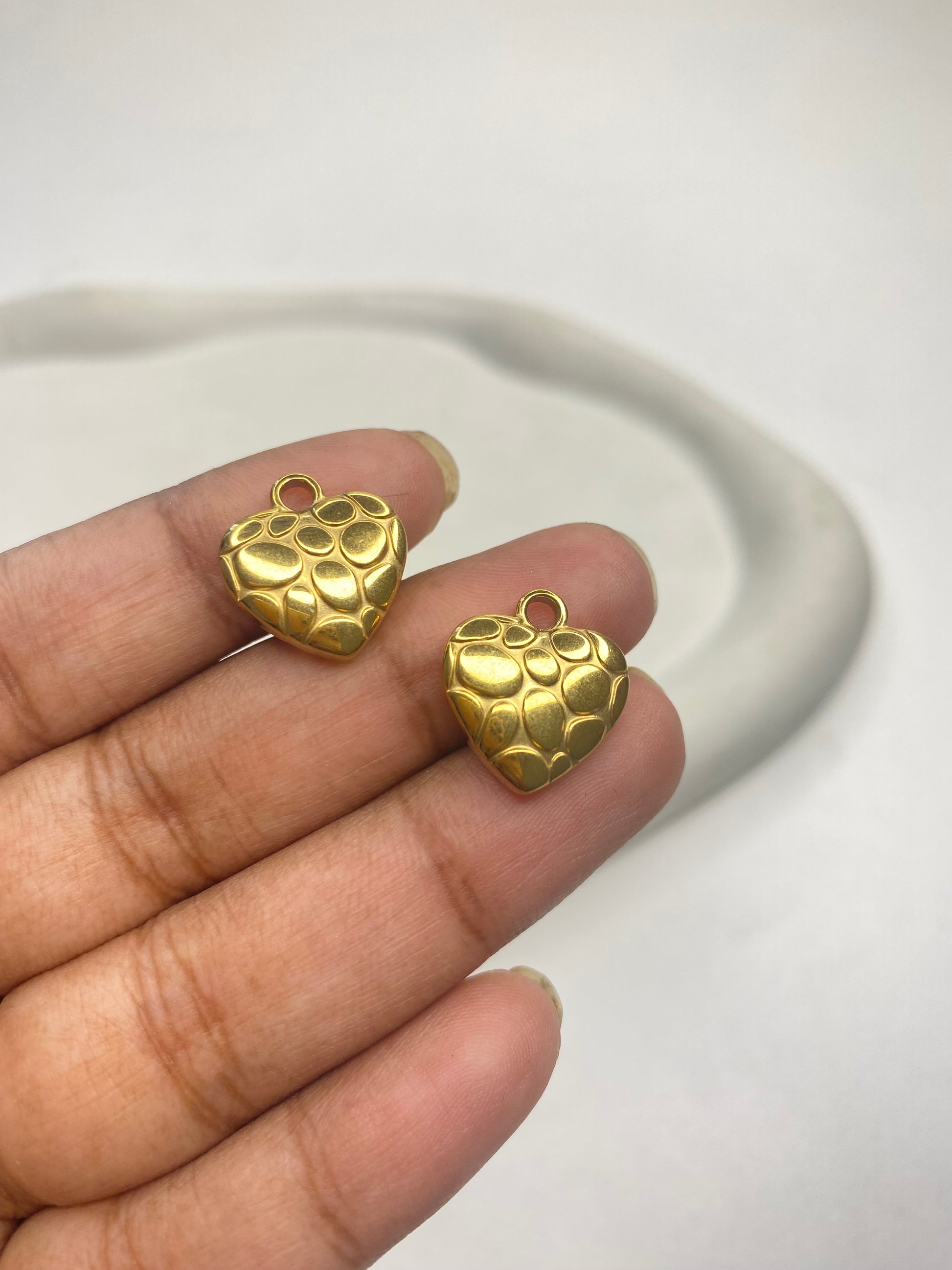 SS 2851 Chunky Patterned Heart charm 18K Gold plated stainless steel ( 1 piece ) Anti tarnish