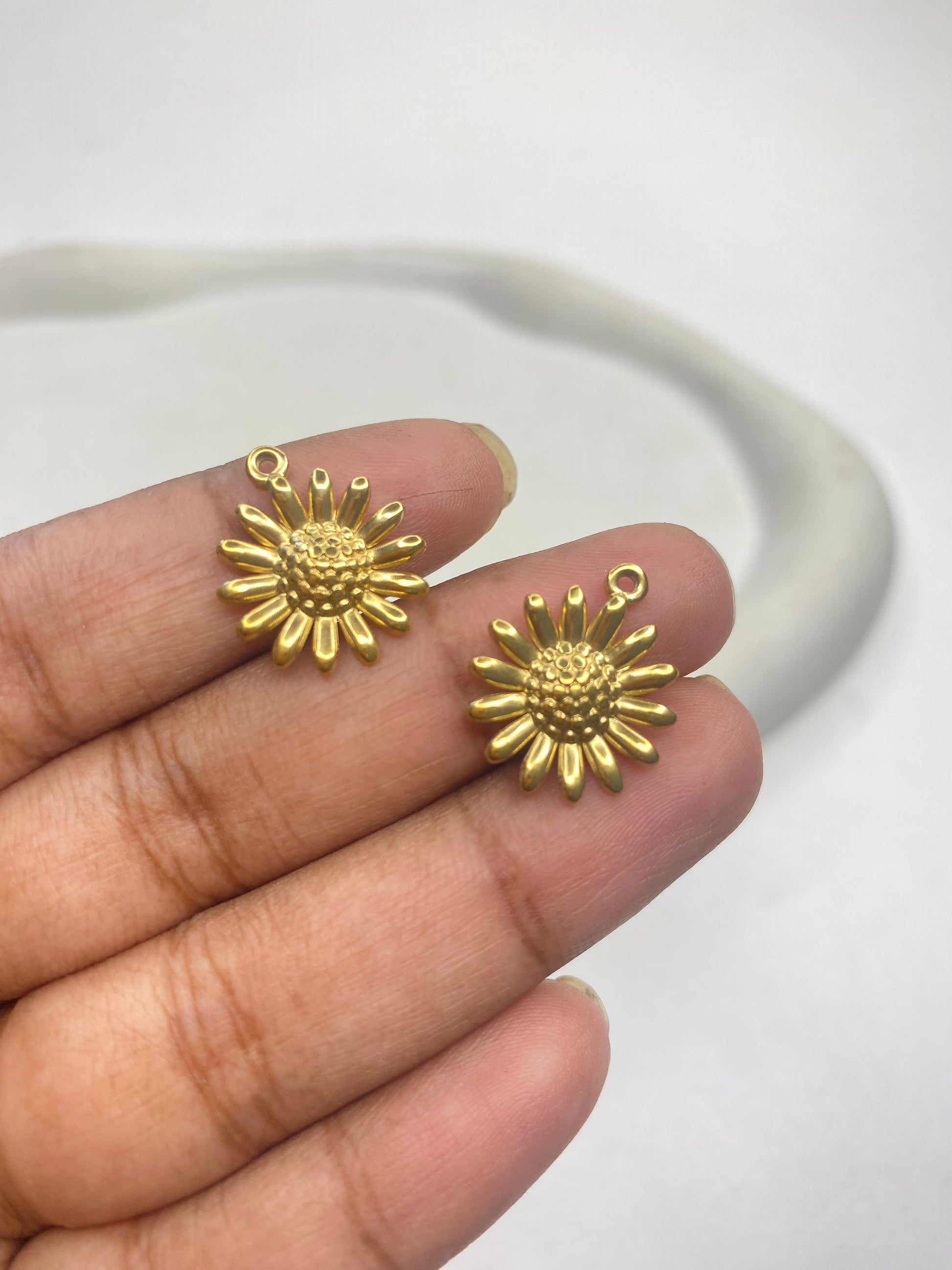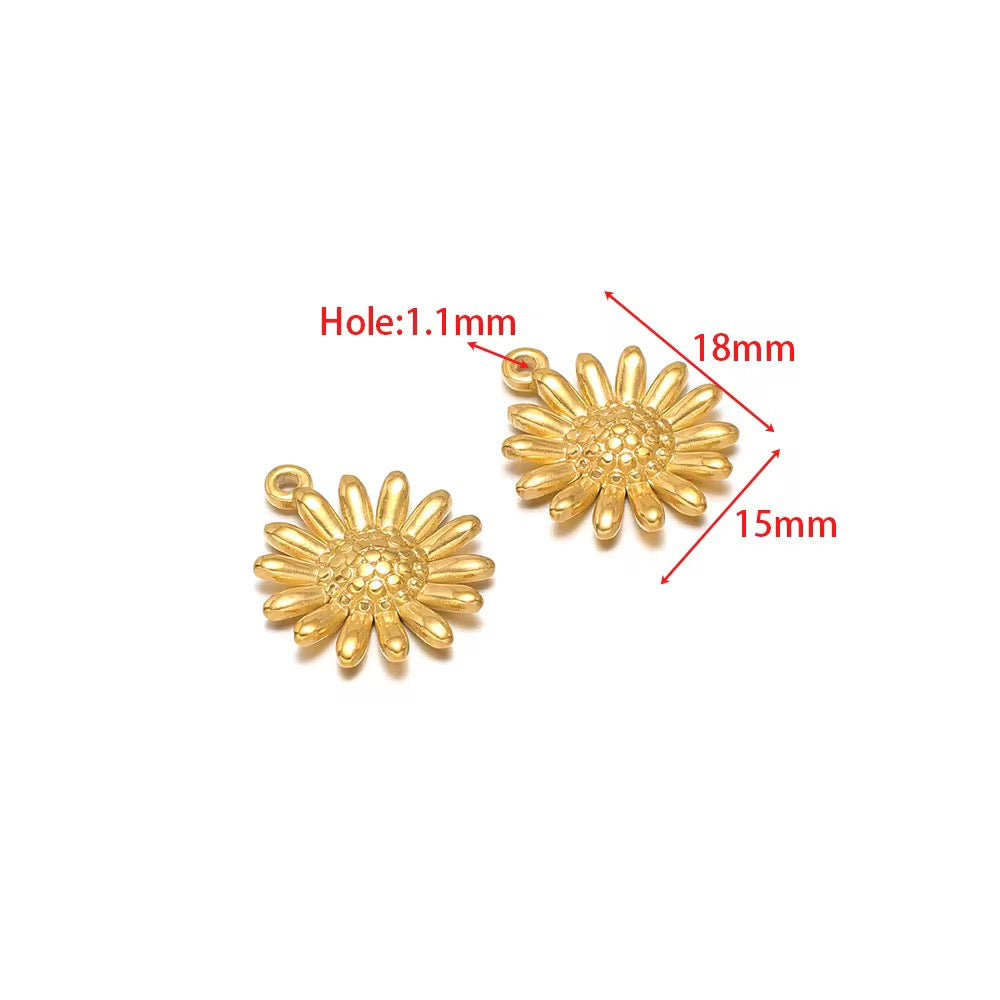 SS 2853 Sunflower charm 18K Gold plated stainless steel ( 1 piece ) Anti tarnish