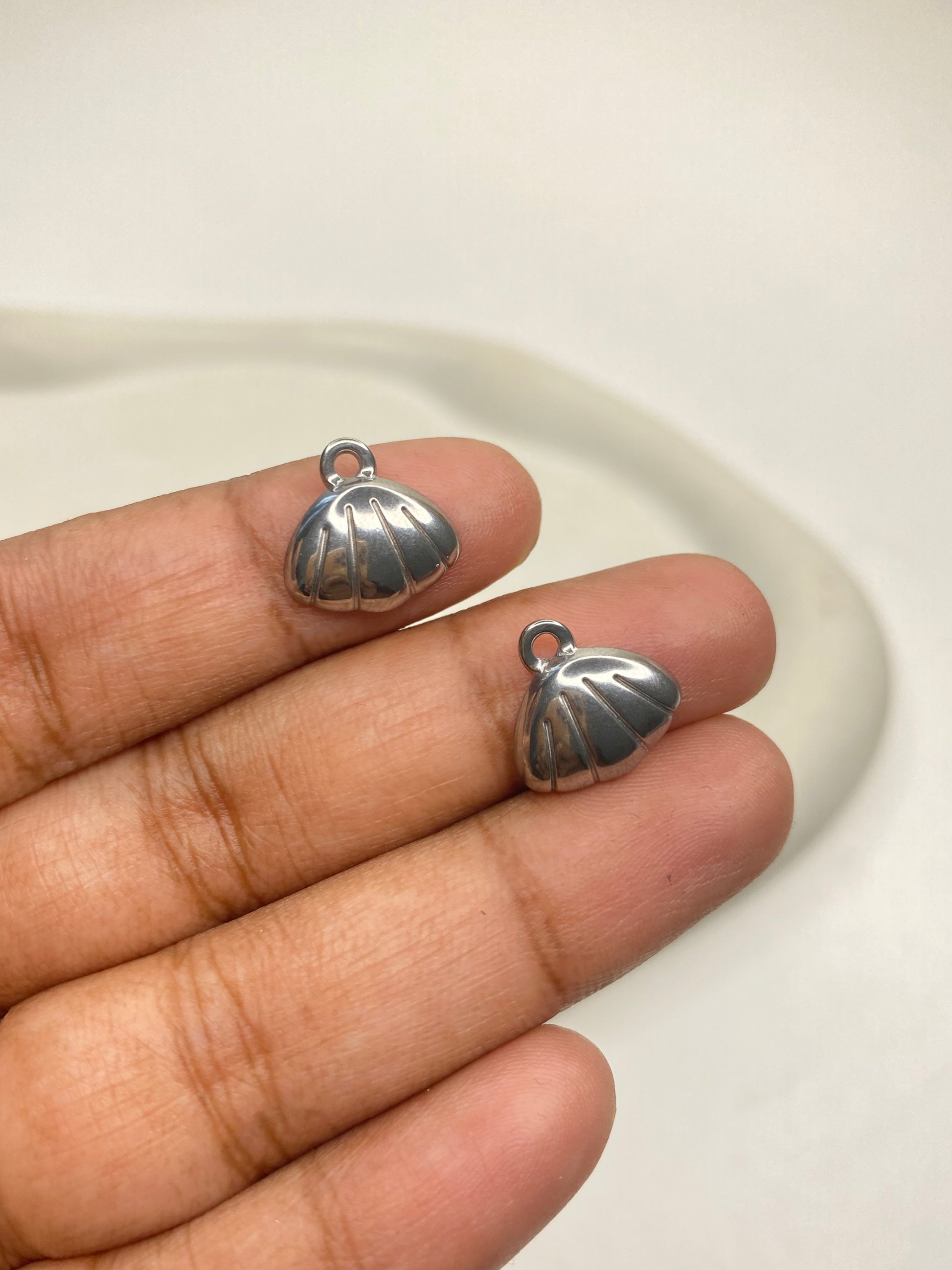 SS 2856 Shell charm Silver plated stainless steel ( 1 piece ) Anti tarnish ( 13 mm )