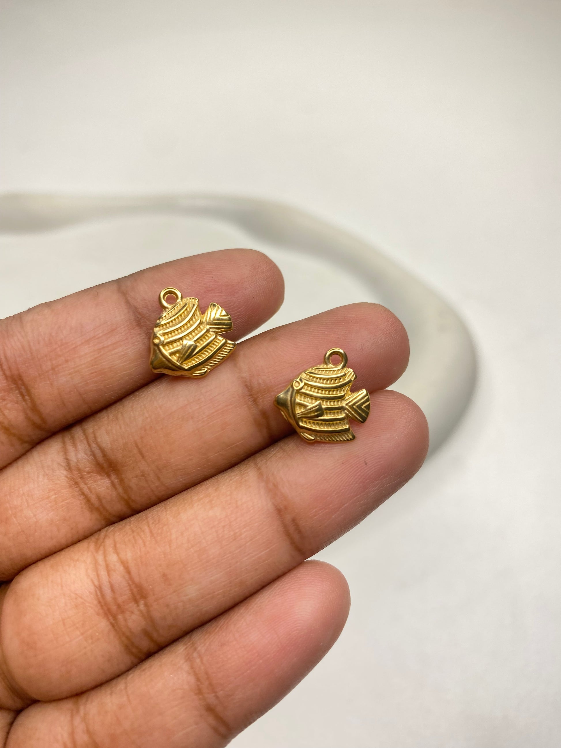 SS 2861 Fish charm 18K Gold plated stainless steel ( 1 piece ) Anti tarnish ( 12 mm )