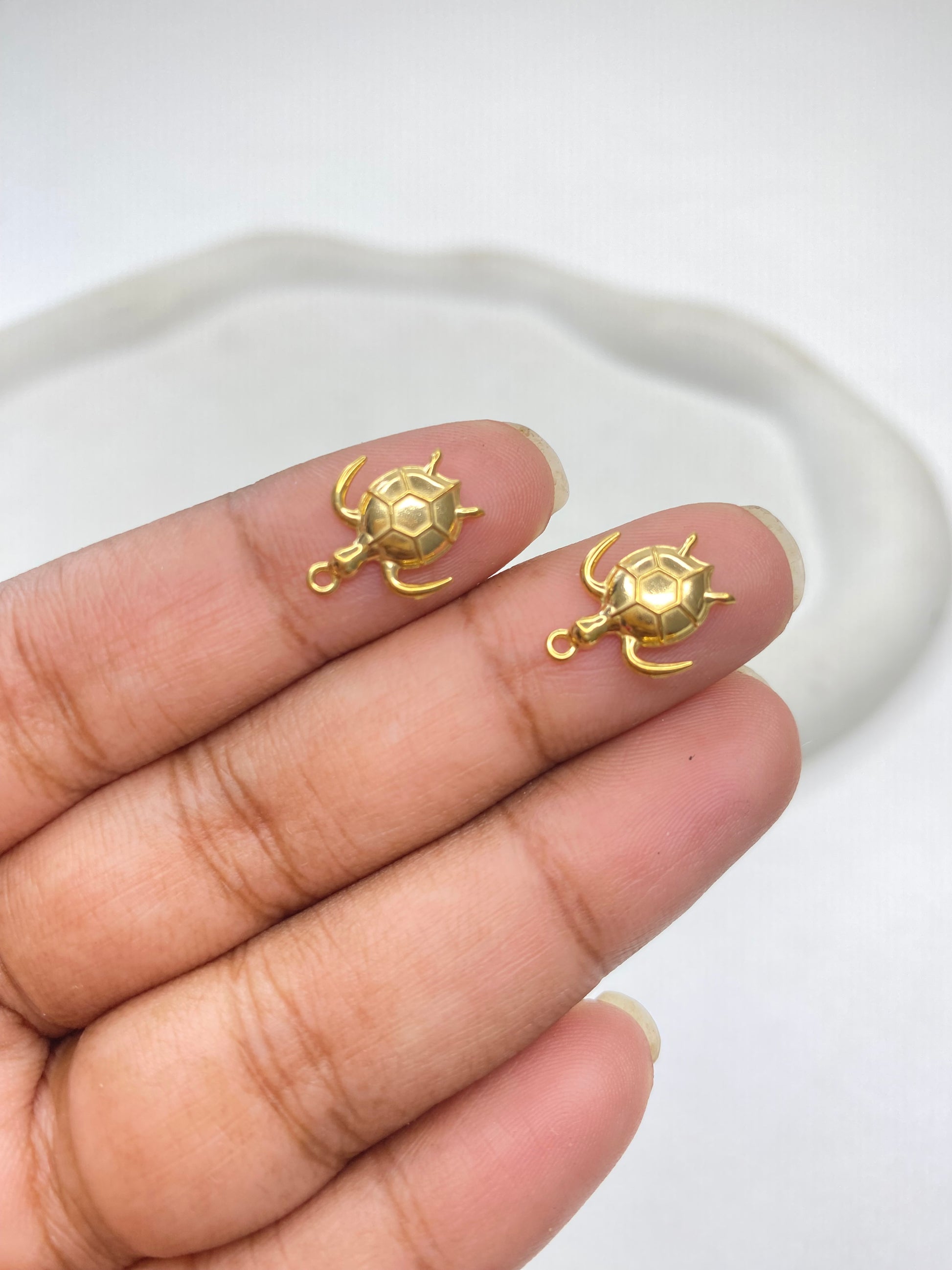 SS 2988 Tortoise Charm Tiny Sea Creature 18K Gold PVD plated stainless steel ( 1 piece ) Anti tarnish ( 11:13 mm )