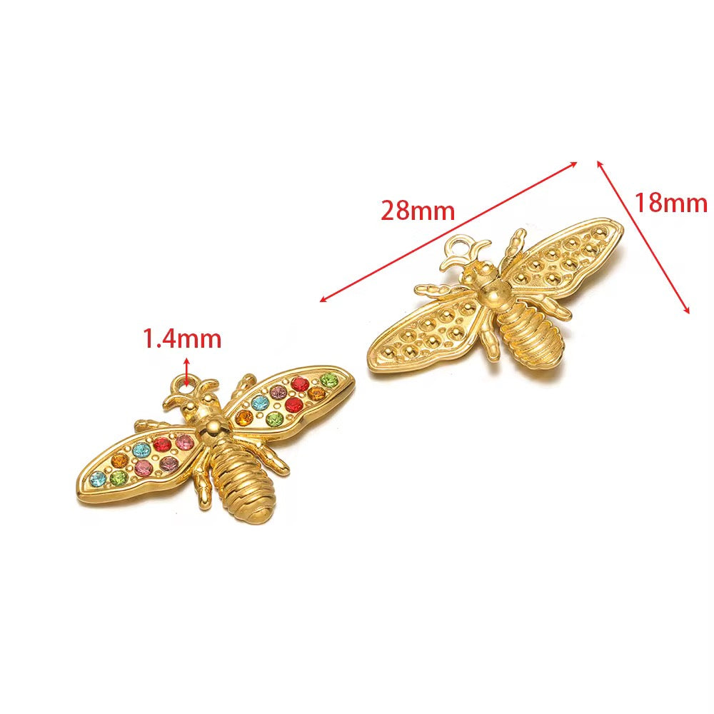 SS 2992 Bee Colourful Zircon Charm 18K Gold PVD plated stainless steel ( 1 piece ) Anti tarnish ( 28:18 mm )